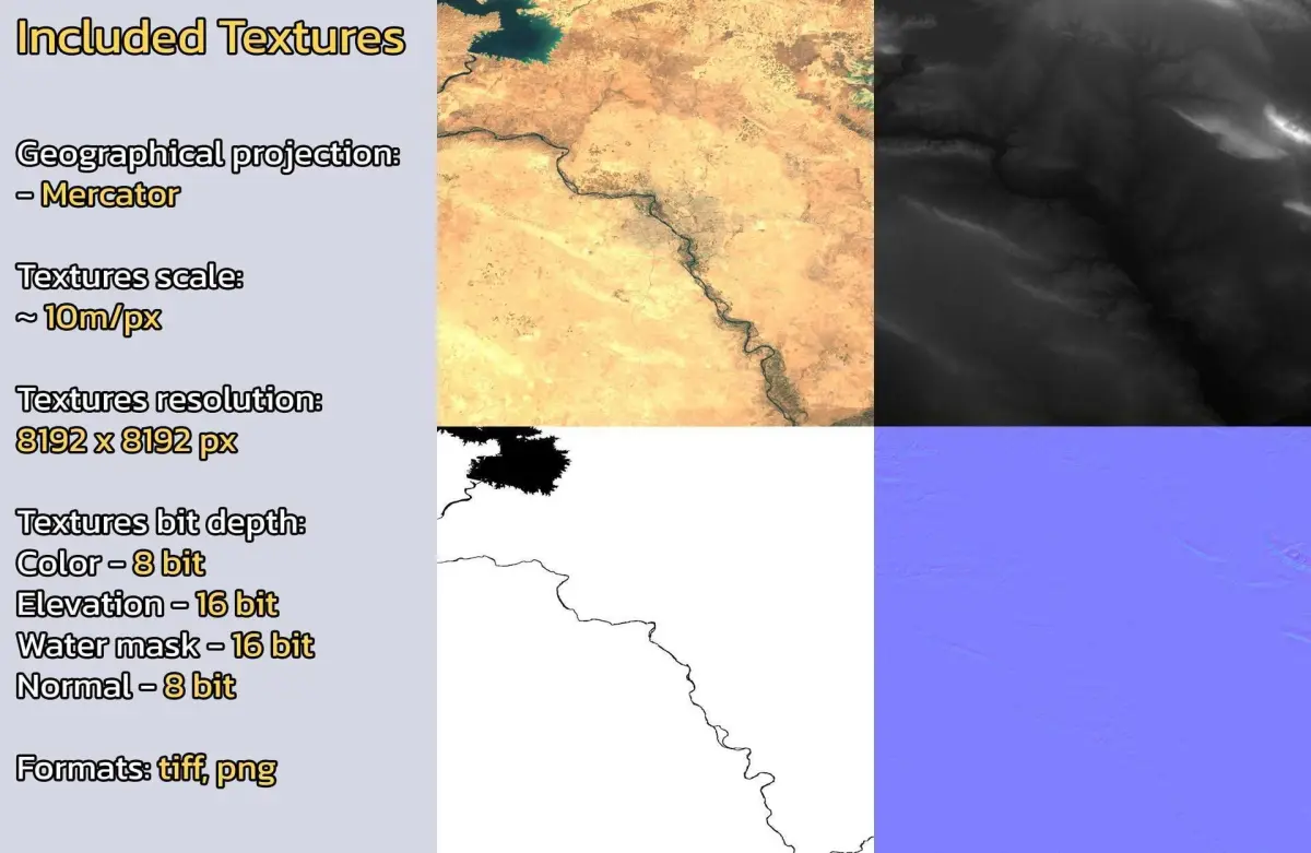 Warning: minor clouds/artifacts may be present on the diffuse color satellite texture due to the nature of the dataset. Check product images.