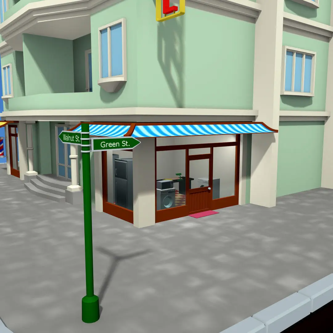 Many detailed low poly motel building;barber shop, white goods store, water tank, refrigerator, micro wave oven ....It contains many details like-each obje has its own name-materials can simply be changed and edited.-there are regular UV maps, new texture are easily applicable-the desired object can be easily displaced-many different variations can be made thanks to the modular design-shop doors can be opened-closed-stage management is easy thanks to the regular hierarchy-suitable for games and animations