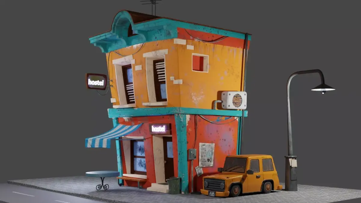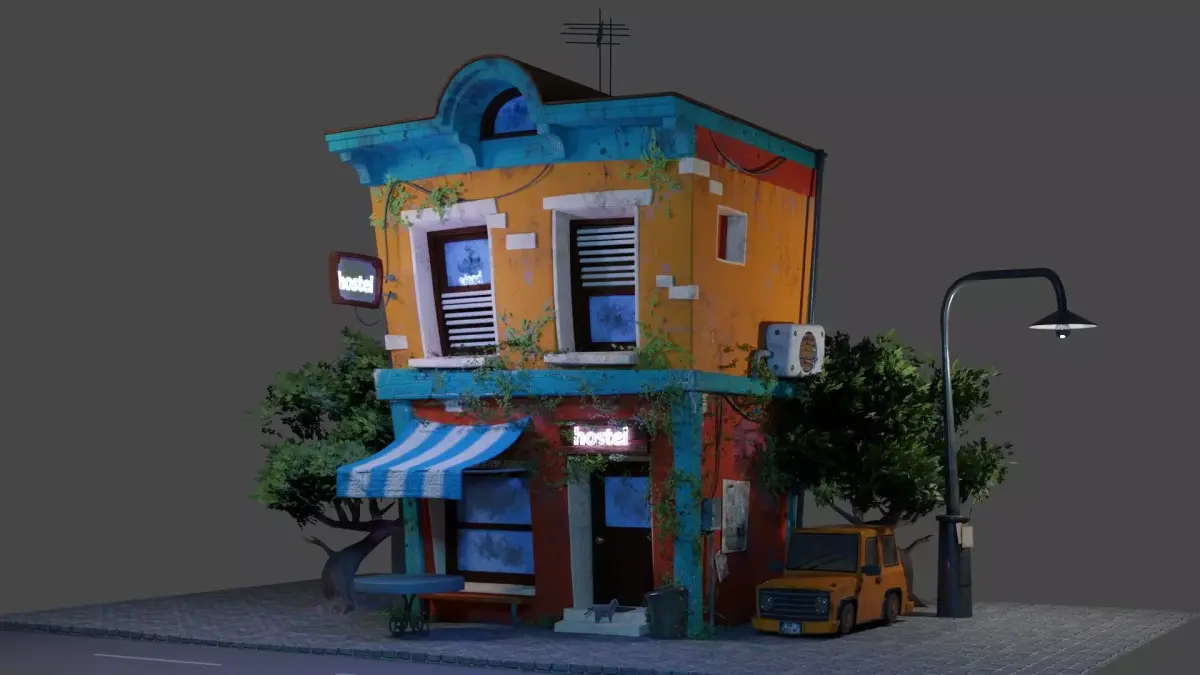 High-quality model of a cheap hotel house integrated with Max, Maya and Blender files. Please note that the Blender file is integrated with the image and material files. You will find the lighting set in the 3D files if you want to use it, but it is up to you to make your own lighting.It should be noted that everything was modeled manually, even the tree in the background, the car, and everything. Onl of Ivy were generated in Blender and a free tool, which is Ivy add-on , Note that you may need to re-update the correct texures paths .