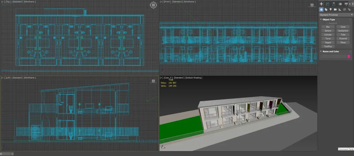 Modern Design - Motel: The model include only the building + basic interior furniture, paths, deck, stairs, fence and road (details on renders are done with Lumion) Please review the attached picture from 3ds max or Archicad for example. *Exported model by materials, very easy to change them. Only 3D model (textures are not included) If have any problems with the model, please do not hesitate to contact me.