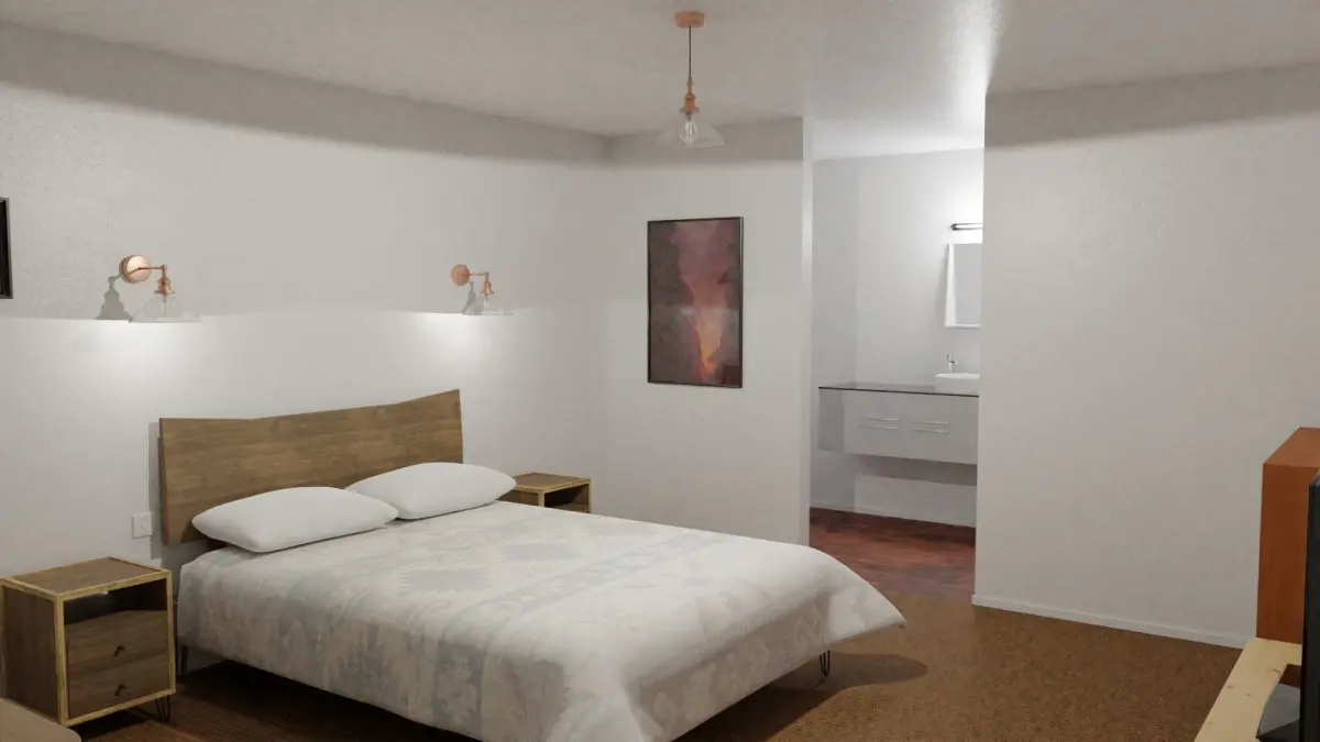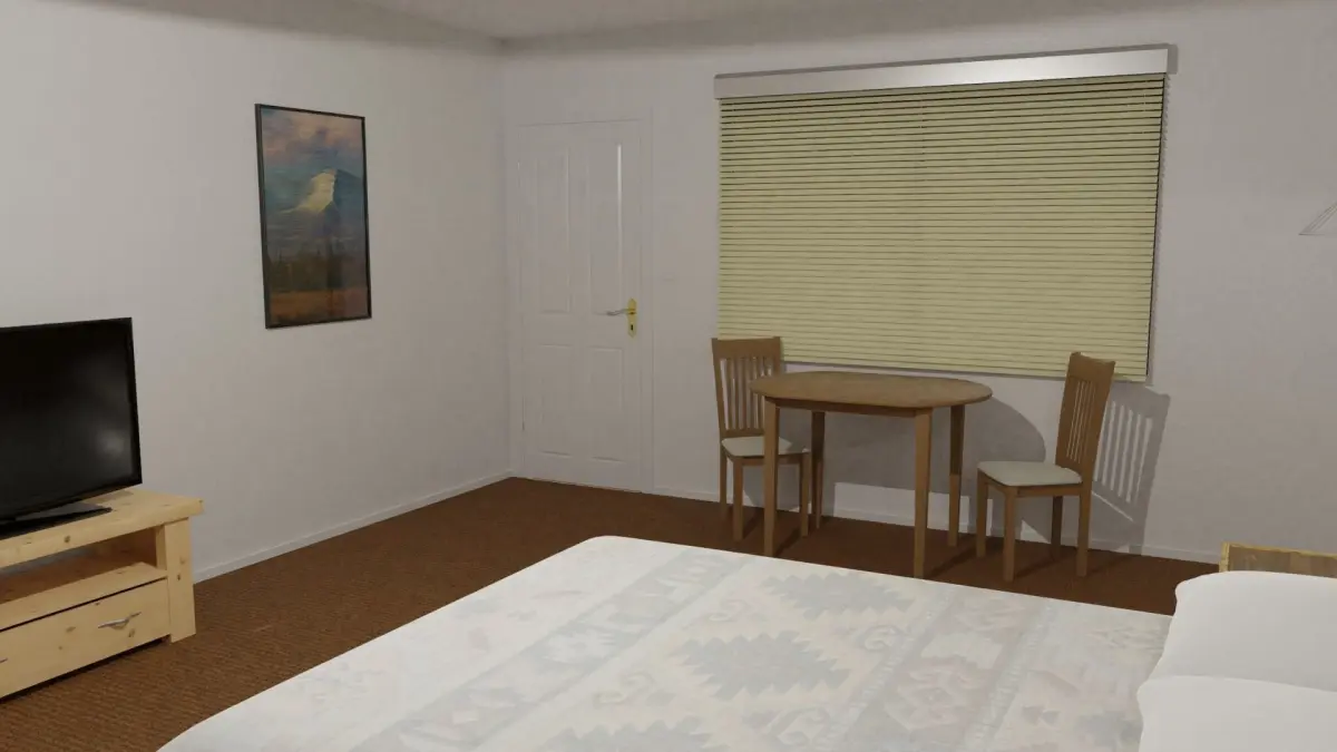 The model has real world scale and measures 4.34 m in depth, 7.18 m in length and 2.63 m in height.