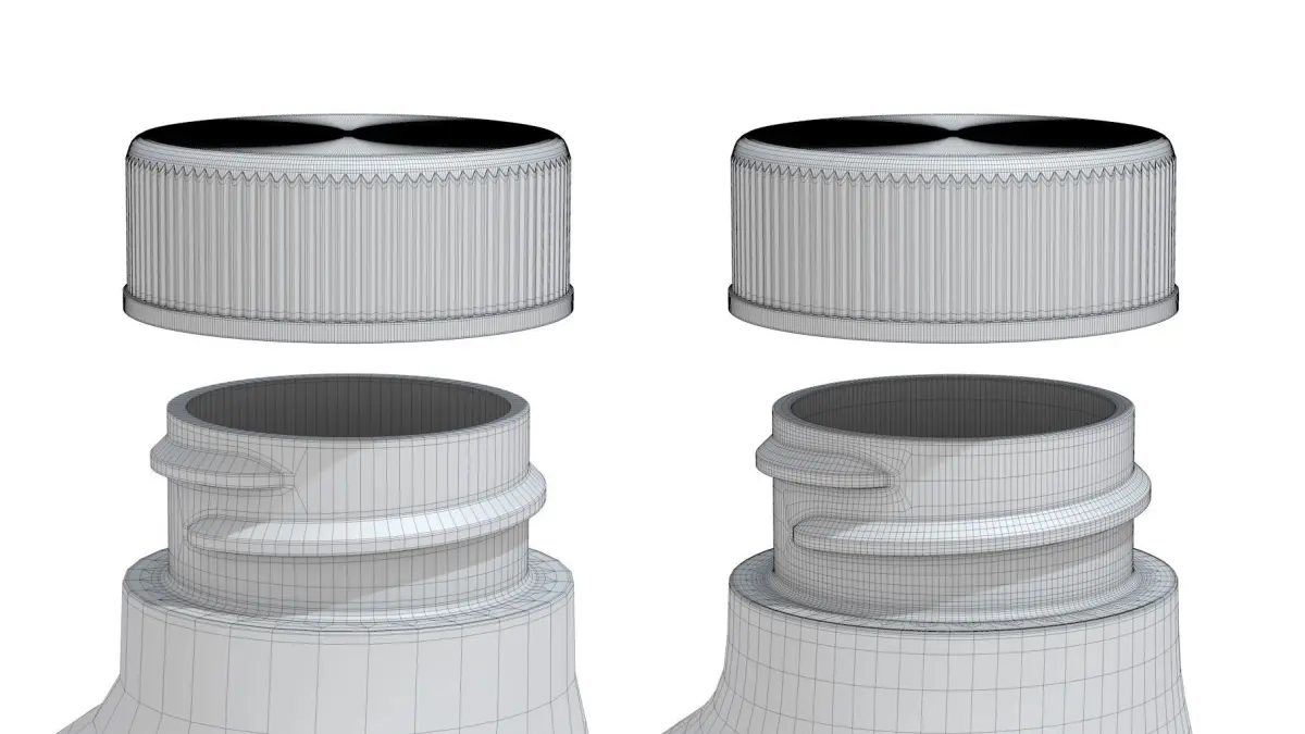 Bottle body have wall thicknesses - can be printed or rendered with transparent material.