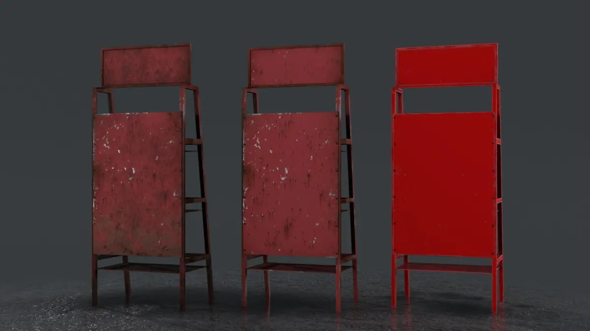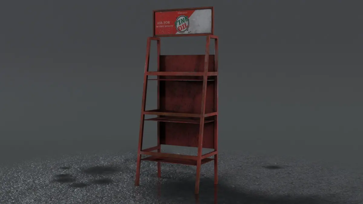 Vintage Motor Oil Stand Shelf Rack featuring 3 Different Texture Variants: New / Old / Rusted and Aged