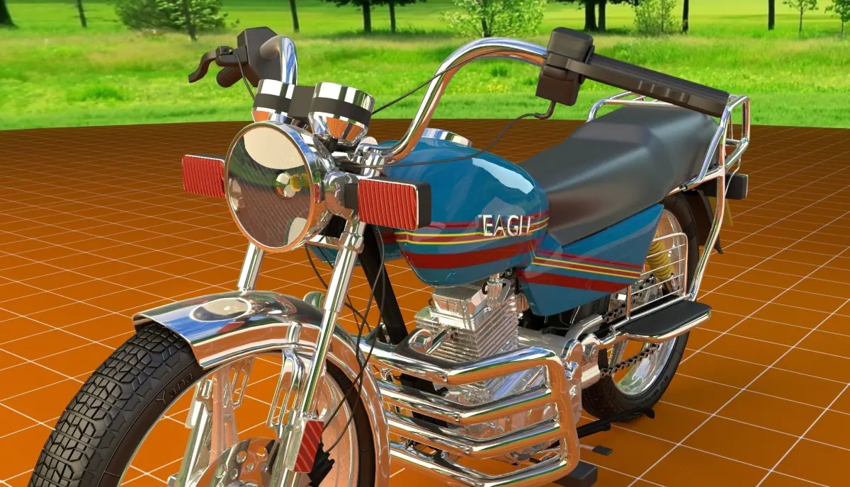 Here comes the Eagle motorbike. I have pushed it's details to extremes togive a photo-realistic render of a super motorbike as seen in the previewimages. This is a high poly stuff but low poly enough to render on a slow PC. In fact, the poly count is given including a sub-surf. All the parts arenamed so that you locate them easily. All objects are parented andso using the controls, you can easily grab, rotate, scale or do anyanimation quite seamlessly. The chain as well is set and rotates as yourotate the rear wheel. The steering is done by the control appropriatelyplaced above it. This is a very suitable model for a vfx shot, 3D animation,or as part of a HD render. All faces have been maintained at 4 vertices to attain the conventional requirements for fitting subdivision. I modeledit primarily in blender, rendered it on both blender's internal engineand also it's cycles engine. However, I went ahead and attached other formats for other platforms as labelled on the product. I wish youa fruitful application of this piece of artistic technology.