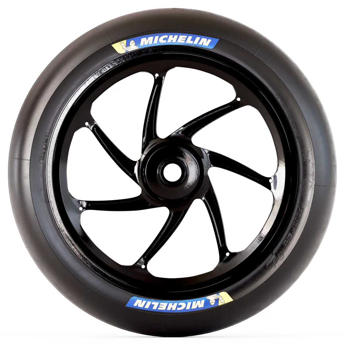 This is a detailed 3D model of a high-performance motorbike racing tyre. Designed with precision, it features realistic tread patterns and sidewall details, making it ideal for close-up renders, concept visuals, and high-end animations.