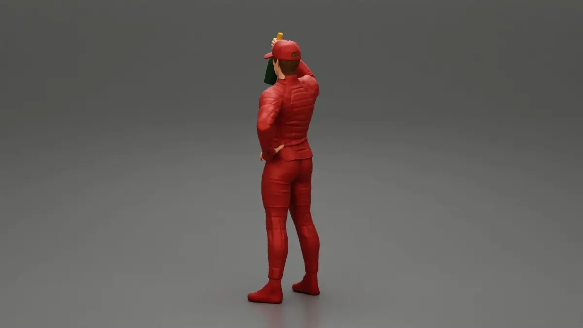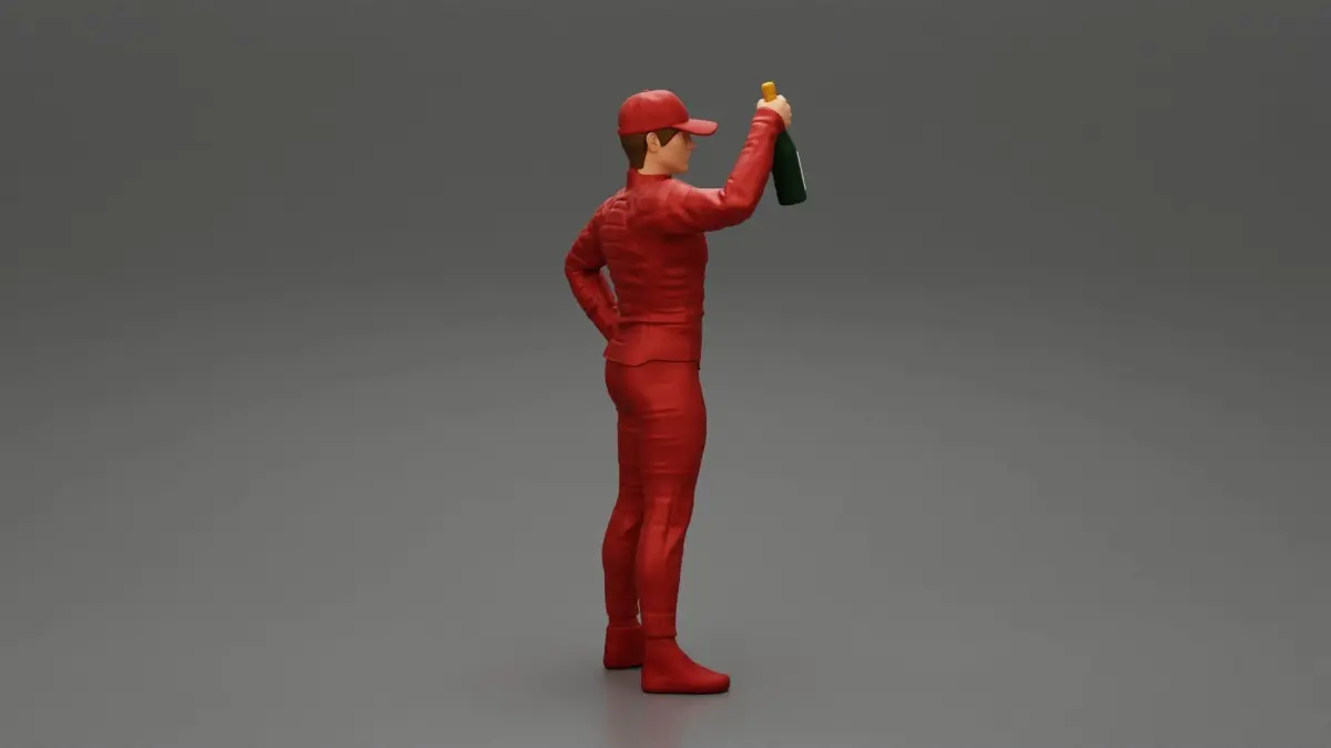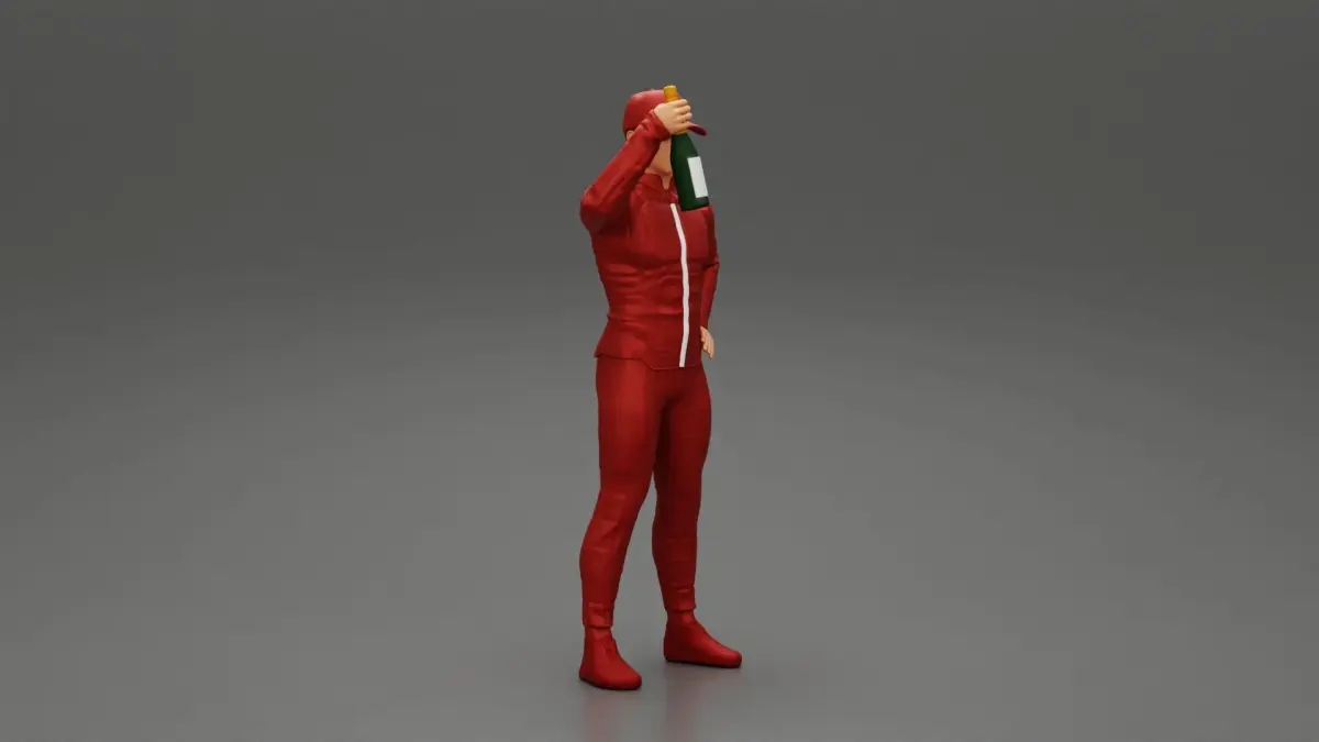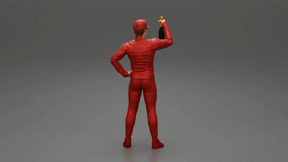 motorbiker celebrates and hold a champagne bottle 3D print model