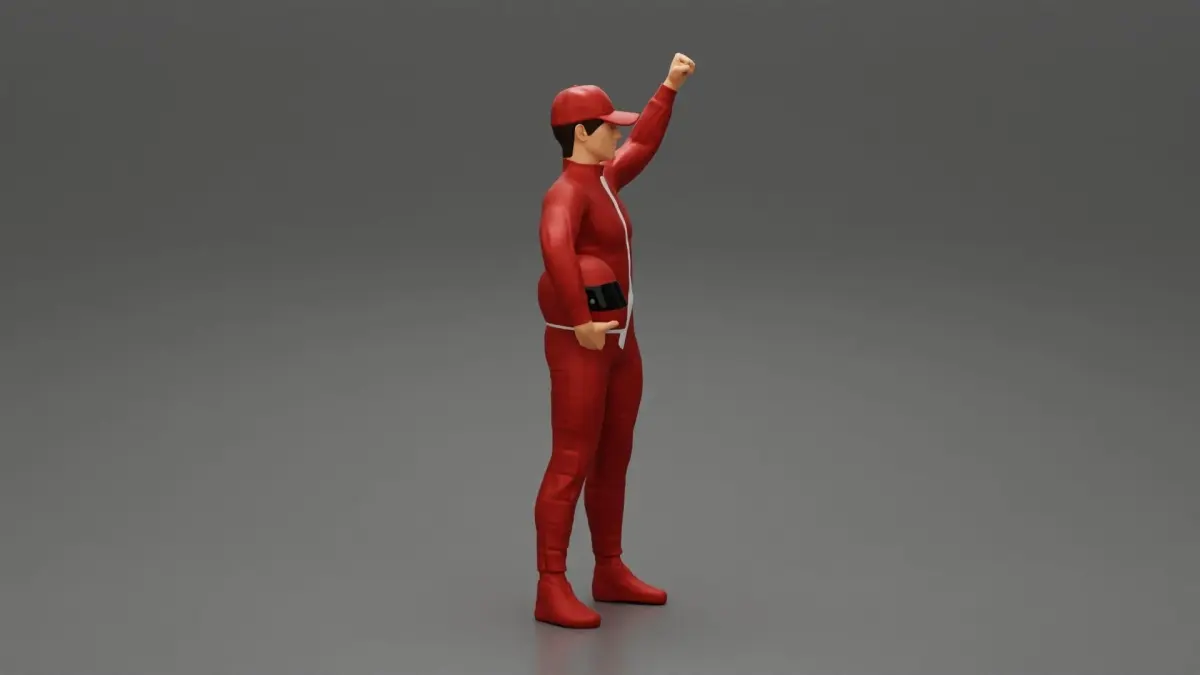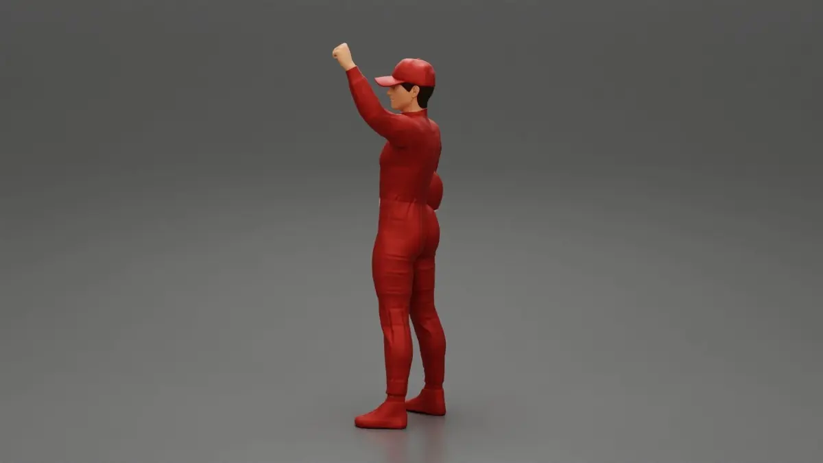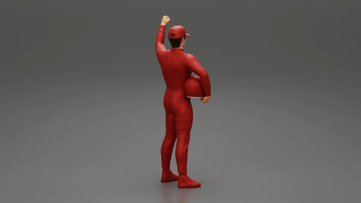Home Catalog motorbiker celebrates and hold his helmet 3D print model