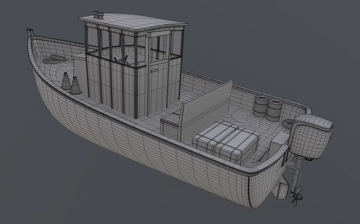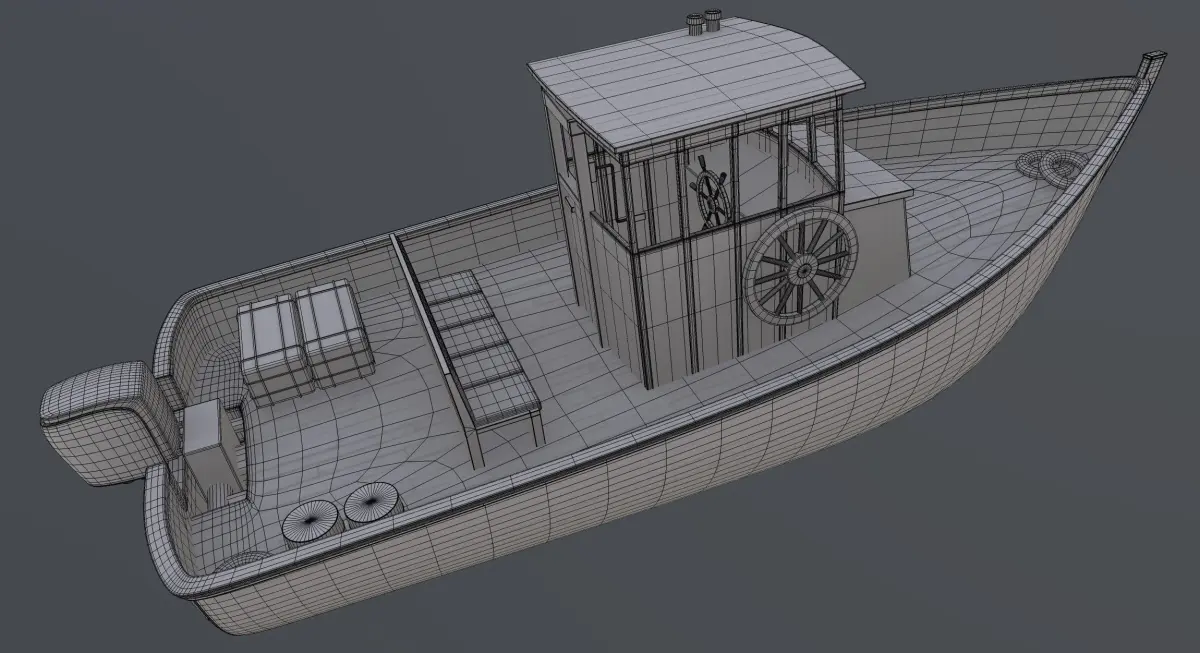 1 A historical fishing boat, with a sleek design and a vibrant red color, equipped with a powerful motor at the back, ready to glide through the calm waters. The boat features wooden panels with intricate carvings, providing a touch of elegance to its practicality. The seats are cushioned in a deep blue fabric, offering comfort to the fishermen during long hours at sea.