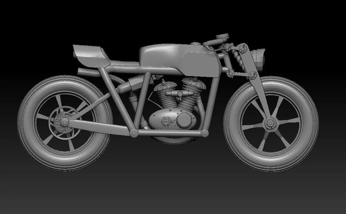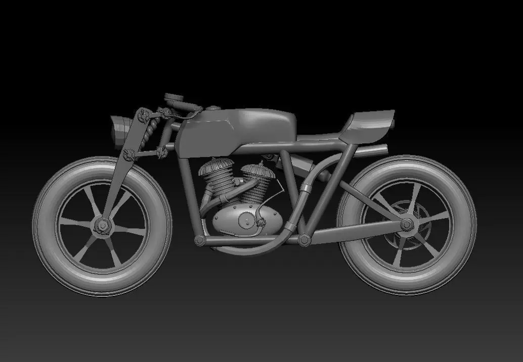 here is presented a model of a motorcycle made in cafe racer style, with vintage front fork. You can connect me for having separated parts, engine, wheels, fork, gas tank and so on...