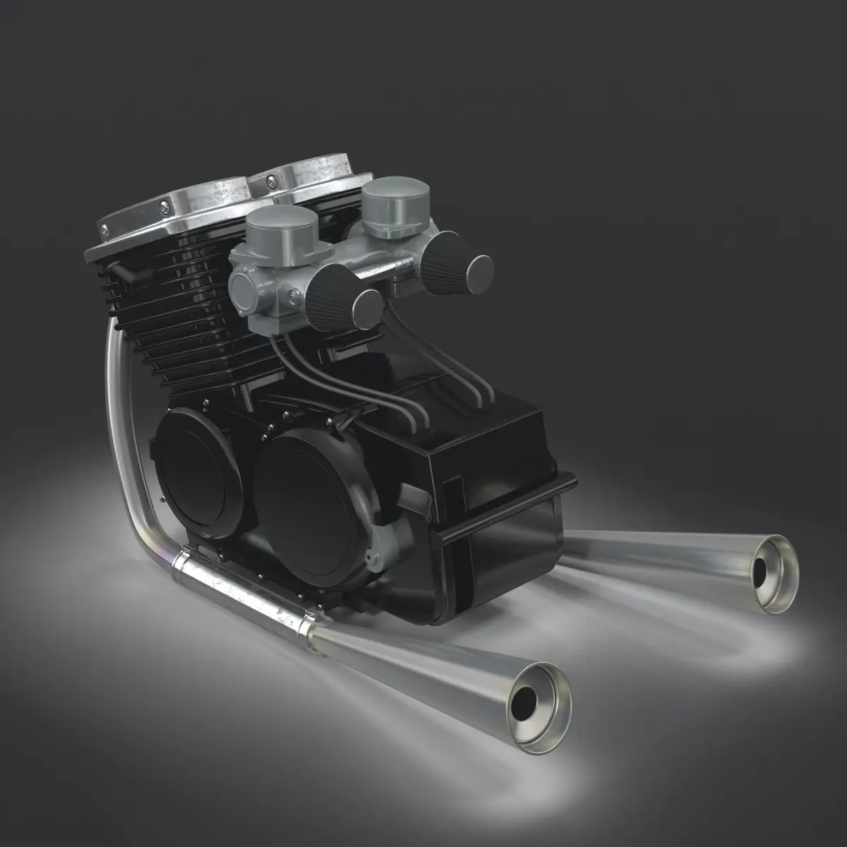Motorcycle engine part. High detailed with v-ray material Turbo Smooth in history modification.