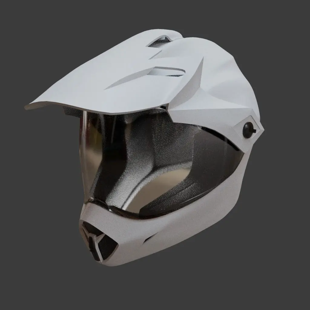 Motorcycle Helmet based in Bell MX-9 Adventure MIPS.The shield has 2 materials, 1 metallic and 1 glass-like.The body has 2 materials, black and white colors.Blend scene has no applied modifiers so you can modify it as you want.