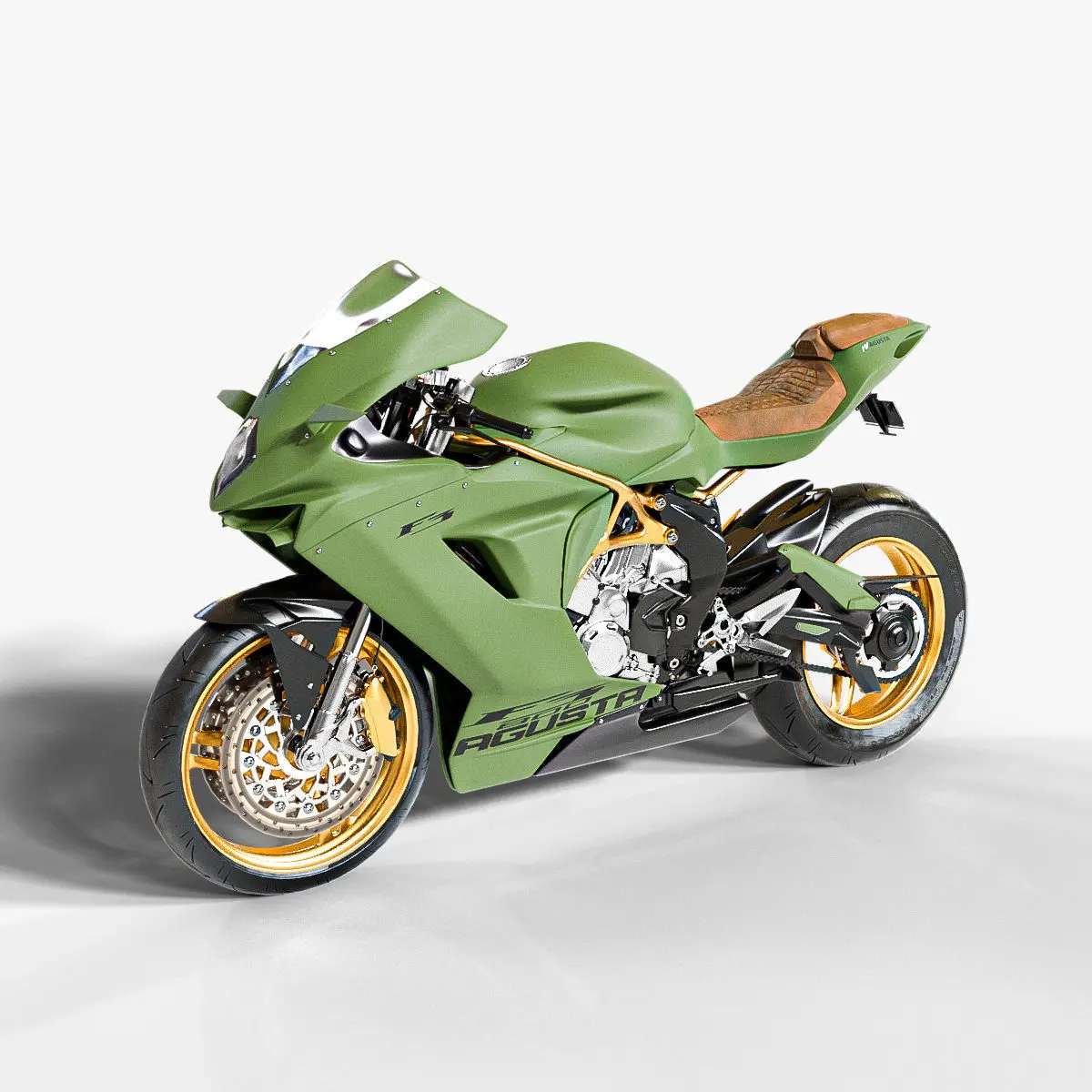 Here is a detailed MV Agusta F3 Army color model that will add realism to your rendering projects. The model has a fully textured design that allows for close-up renders and was originally modeled in Blender and rendered with Cycles. This beautiful italian motorcycle is a copy inspired by the well known MV Agusta F3.