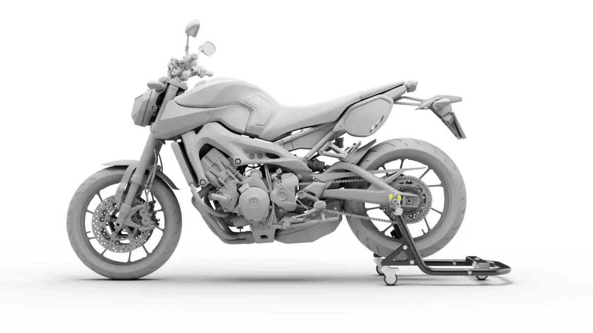 Detailed model of motorcycle (rear) stand. (motorcycle is not included)
