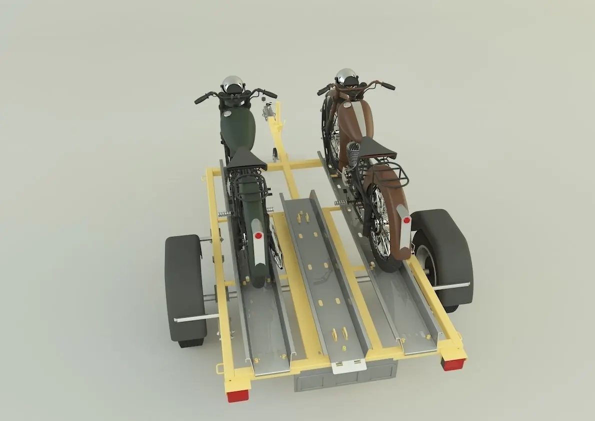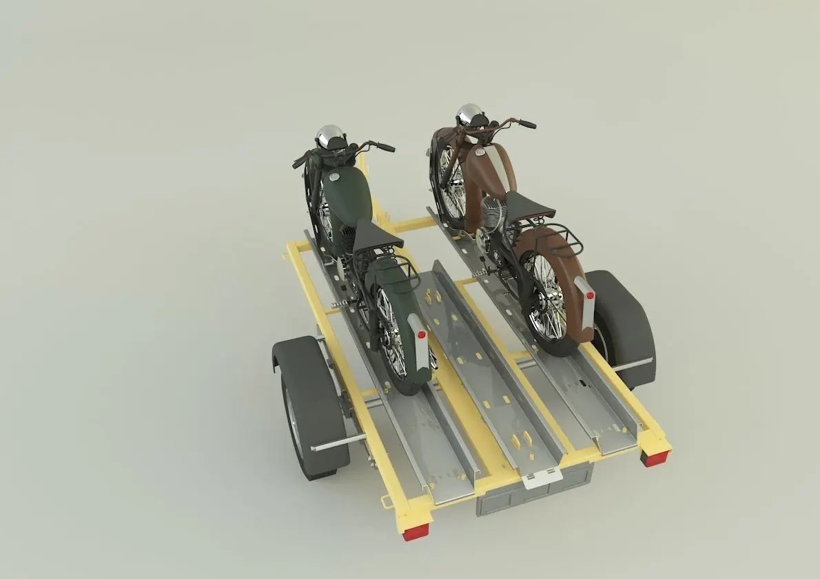motorcycle trailer. Created in 3ds max 2015. vray 3.00 rendered. I have 3ds max file. It has different formats. There is no render scene. (3ds, fbx, obj). There are materials. no animation. Motorcycle trailer polys -69600, verts- 88998