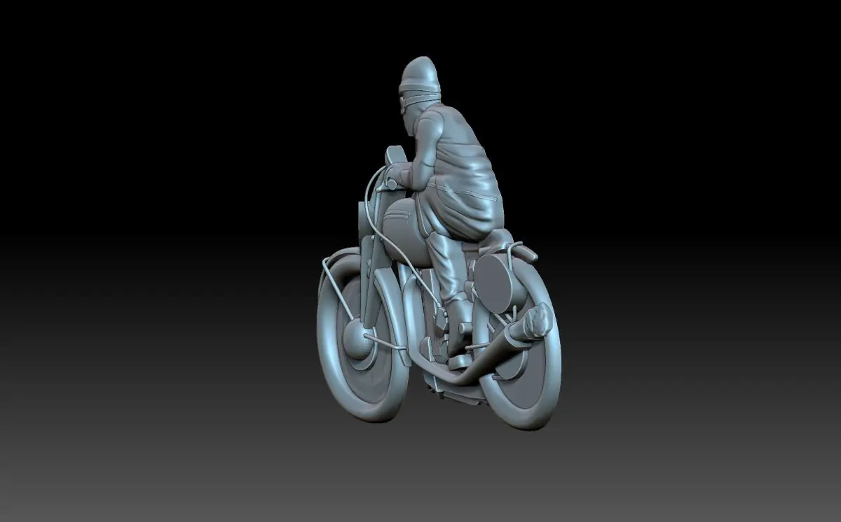 HomeCatalogMotorcyclist person riding motorcycle 3D print model