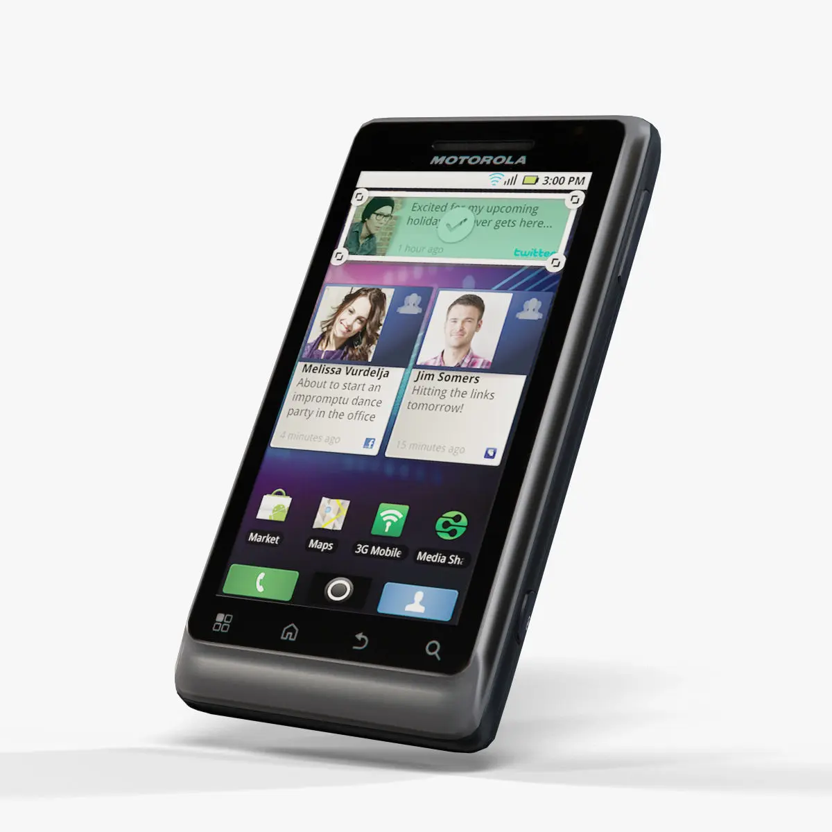 • Let me present to you simple low-poly 3D model Motorola Milestone 2. This model can be used in various fields 3D Graphics such as game development, advertising, interior design, motion picture art, visualization, etc... Modeling was made with ortho-photos of real phone that is why all details of design are recreated most authentically.