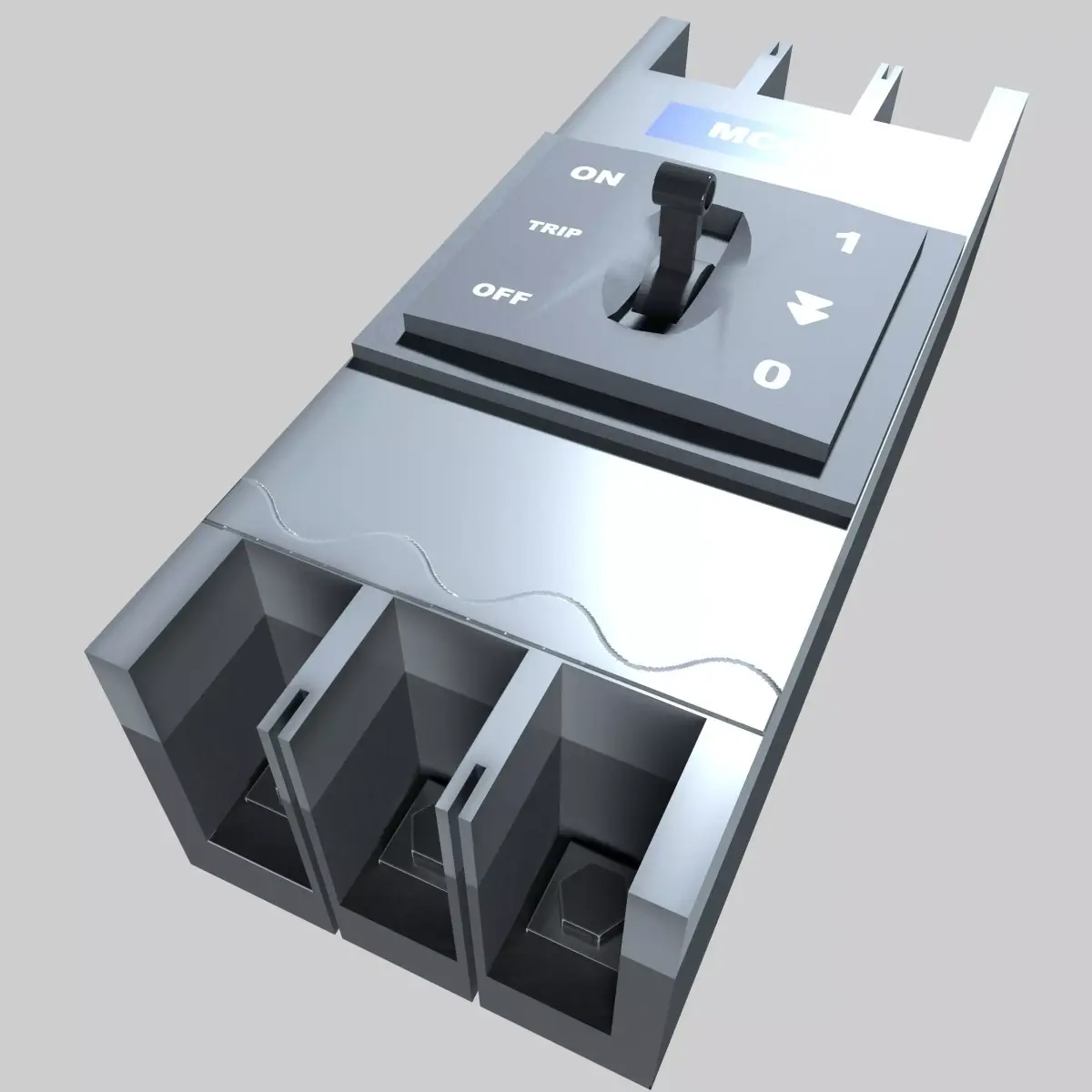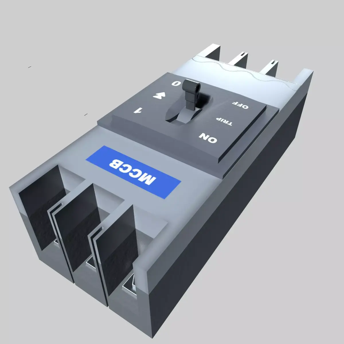 A high-quality, realistic MCCB (Moulded Case Circuit Breaker) 3D model designed for electrical training simulations, VR/AR safety modules, industrial visualization, and technical learning environments.