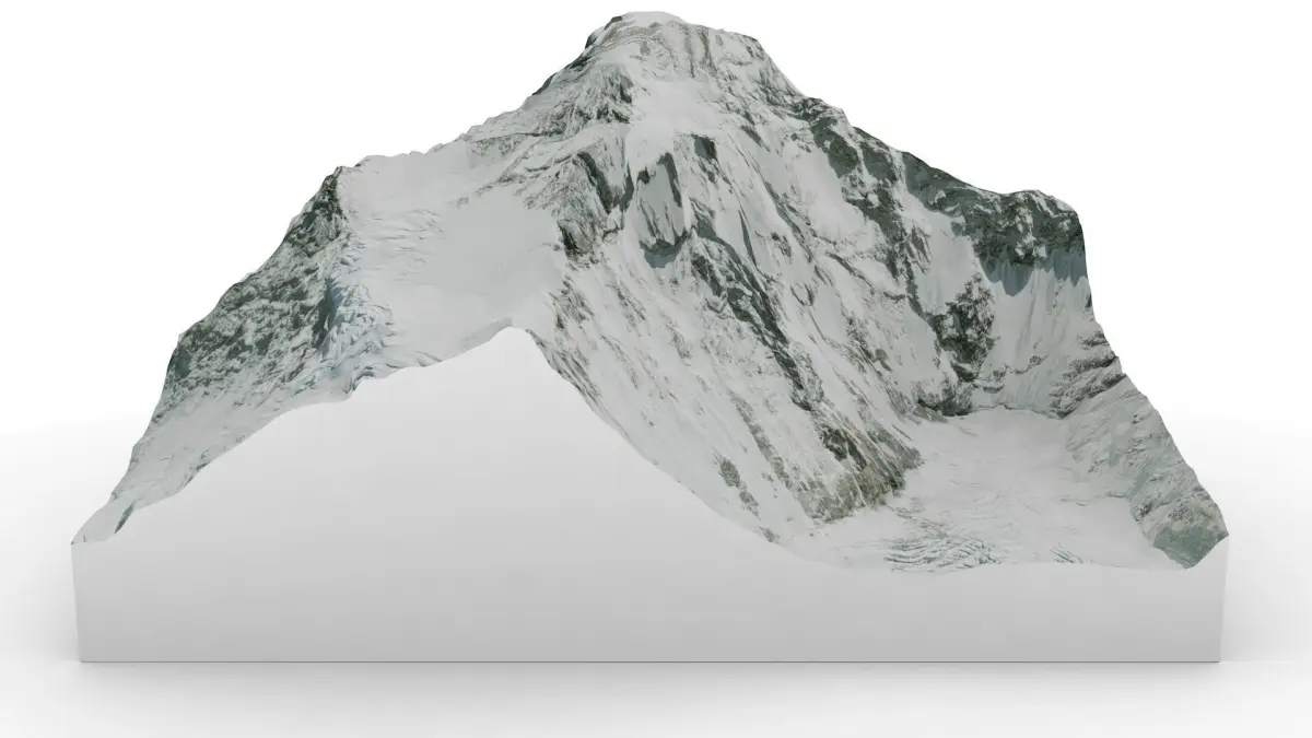 Mount Cho Oyu is one of the highest peaks in the Himalayas. It culminates at 8188 m.The map of Mount Cho Oyu was made from satellite and GPS data. The texture has a high definition of 3840 x 3584 px