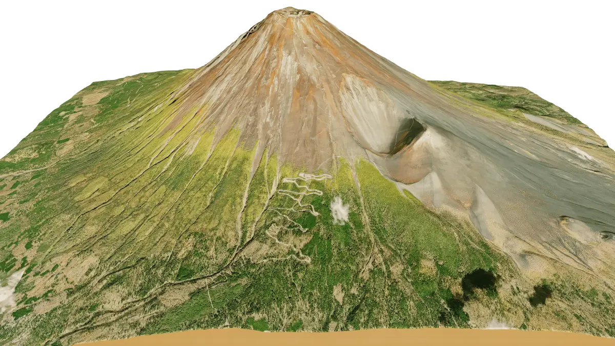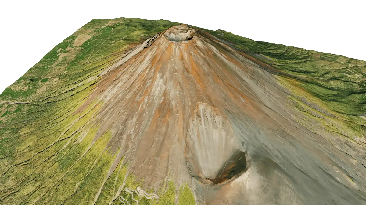 Mount Fuji, Japan 3D terrain model. 3d model landscape of the Fuji volcano