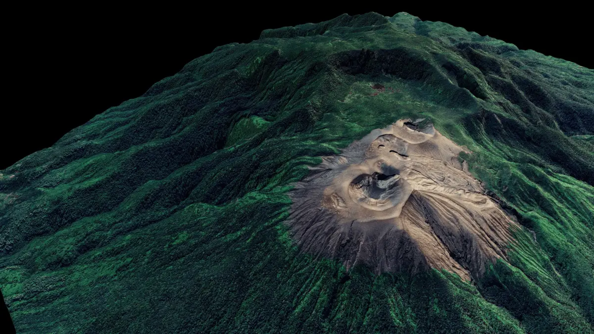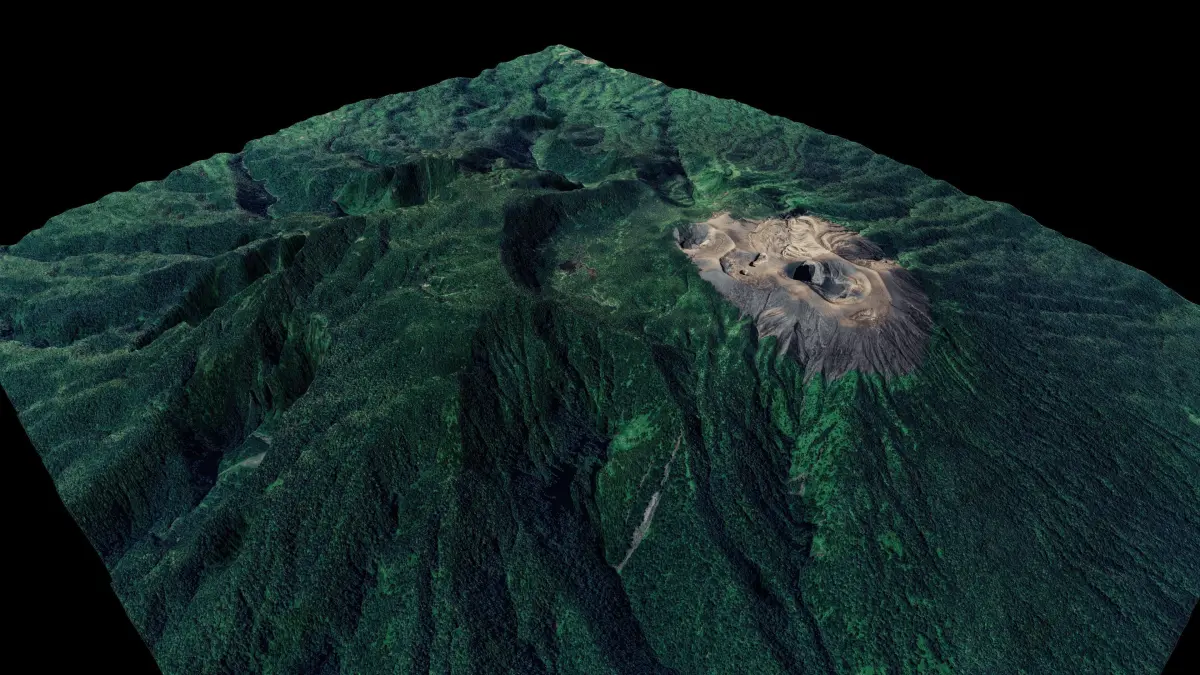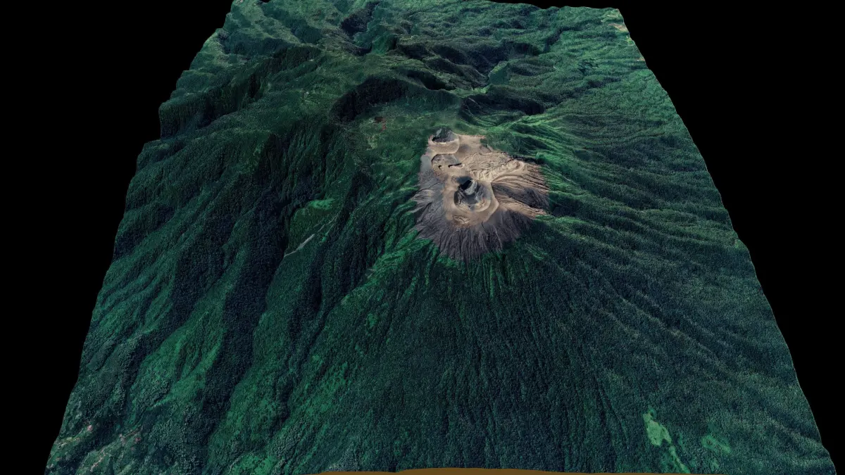 Merapi stratovolcano 3d terrain model. 3d model landscape of the Mount Merapi