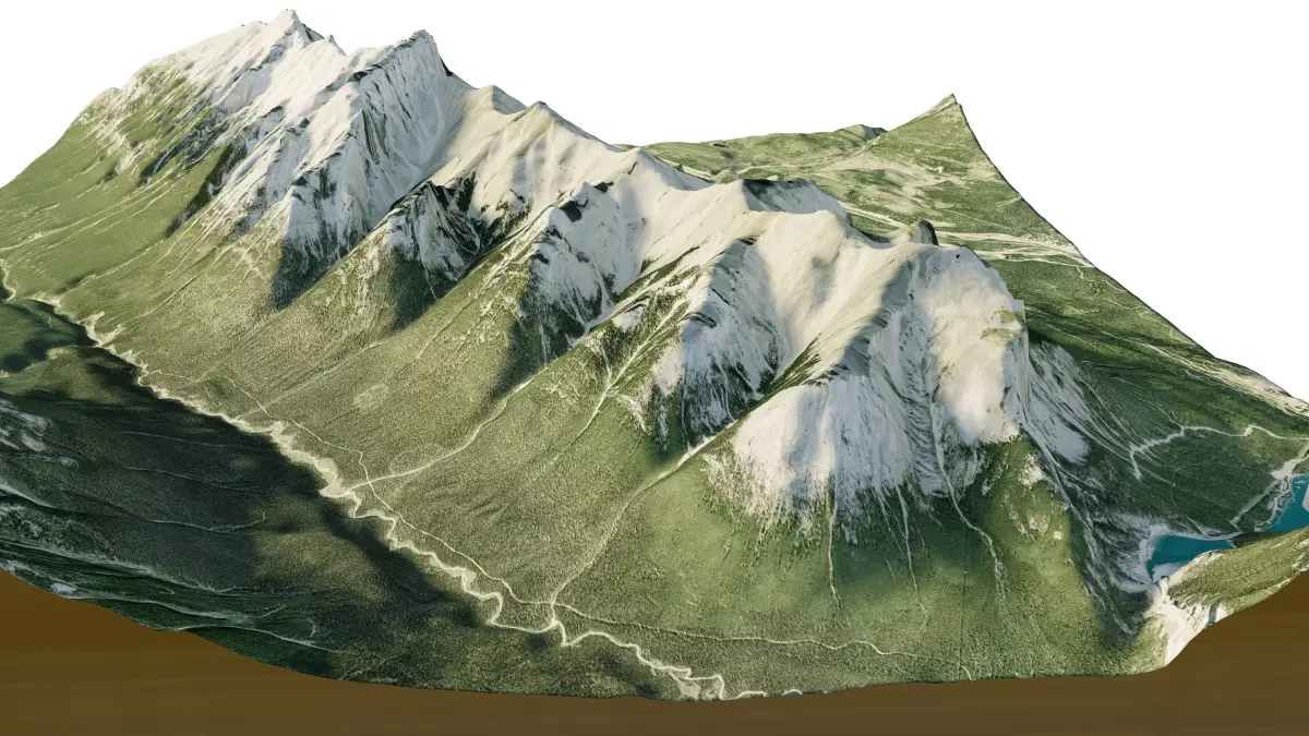 Mount rundle , Canada 3d terrain model. 3d model landscape of the Mt rundle mountain range