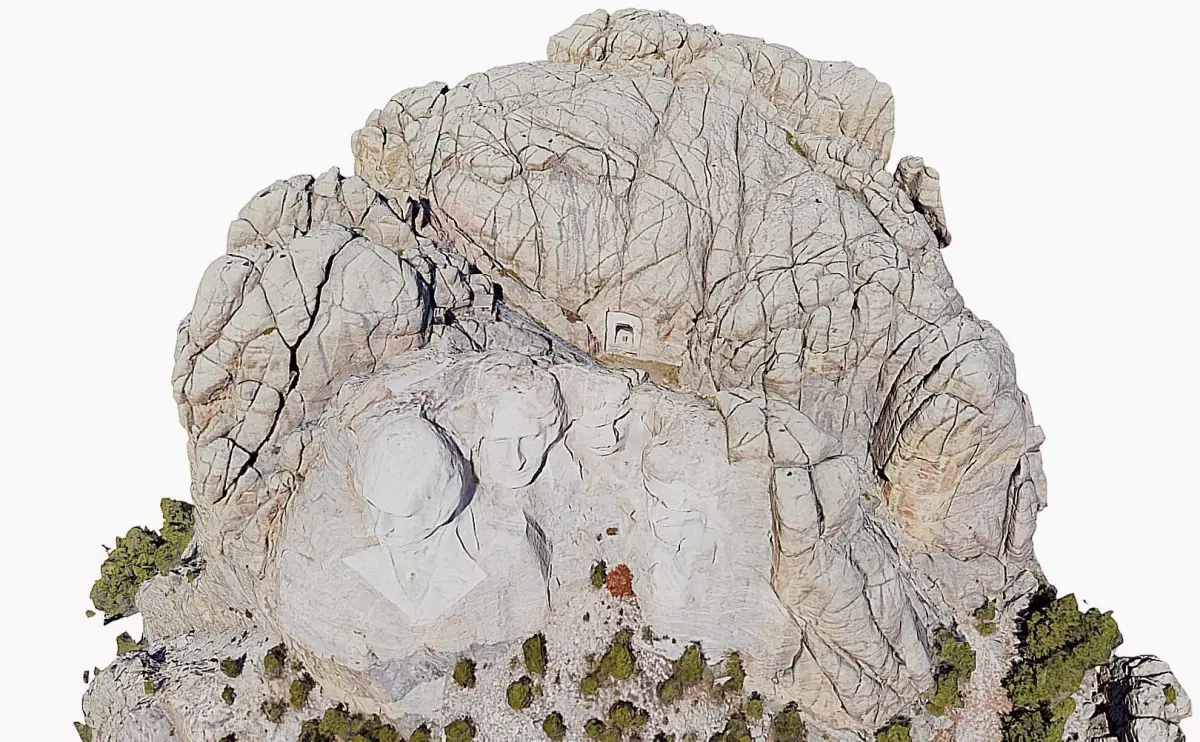 Mount Rushmore National Memorial is centered on a colossal sculpture carved into the granite face of Mount Rushmore (Lakota: Tȟuŋkášila Šákpe, or Six Grandfathers[2]) in the Black Hills near Keystone, South Dakota. Sculptor Gutzon Borglum created the sculpture's design and oversaw the project's execution from 1927 to 1941 with the help of his son, Lincoln Borglum.[3][4] The sculpture features the 60-foot (18 m) heads of Presidents George Washington (1732–1799), Thomas Jefferson (1743–1826), Theodore Roosevelt (1858–1919) and Abraham Lincoln (1809–1865), as recommended by Borglum.[5] The four presidents were chosen to represent the nation's birth, growth, development and preservation, respectively.[6] The memorial park covers 1,278 acres (2.00 sq mi; 5.17 km2)[7] and the actual mountain has an elevation of 5,725 feet (1,745 m) above sea level.