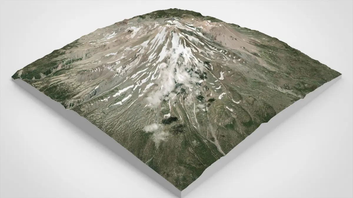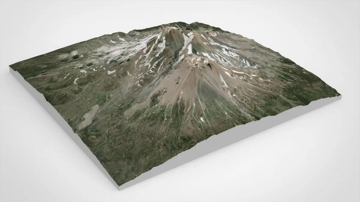 Mount Shasta is a stratovolcano in the Cascade Mountains system in California, United States. The adjacent town of Mount Shasta is named after the mountain. Height 4317 meters. The main peak of the mountain is adjacent to four intersecting satellite volcanic cones, the tallest of which is Shastina.