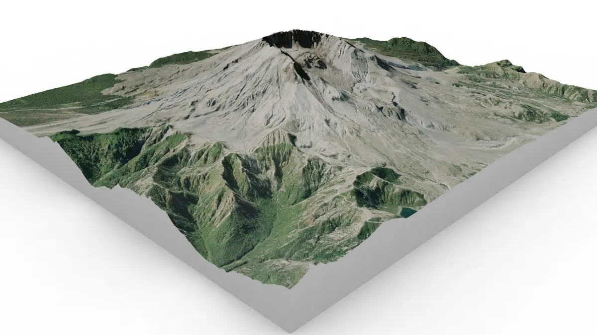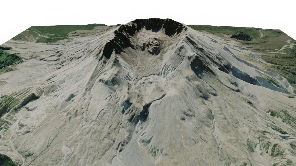 Mount St Helens is a famous mountain in USA. It culminates at 2540 m.The map of Mount St Helens was made from satellite and GPS data. The texture has a high definition of 4352 x 3840 px