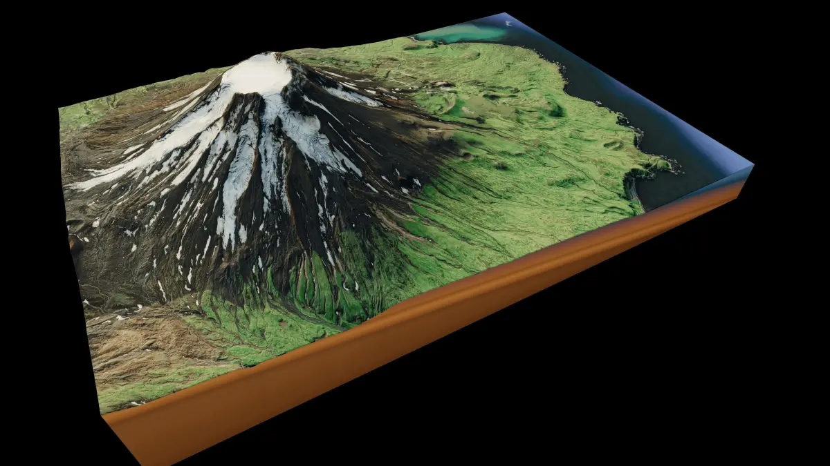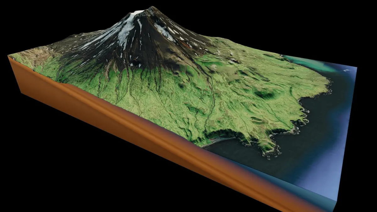 3d model landscape of Mount Vsevidof, Nikolski, AK, United States.