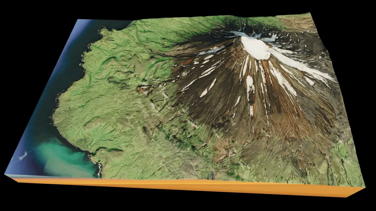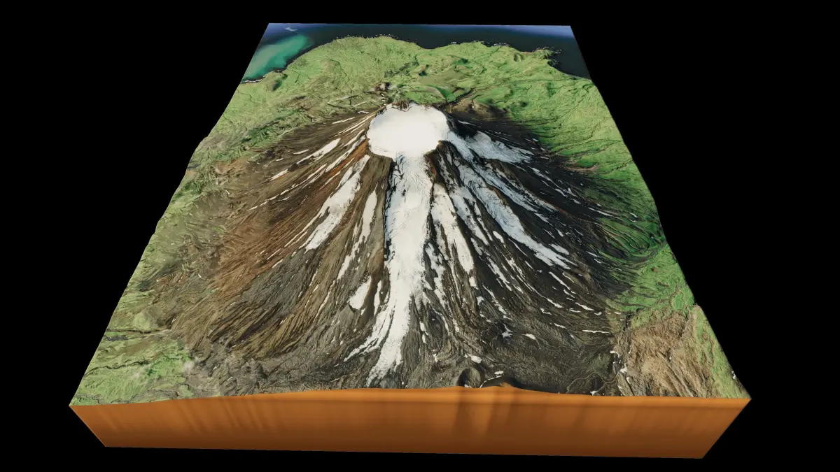 Vsevidof stratovolcano 3d terrain model. 3d model landscape of the Vsevidof volcano