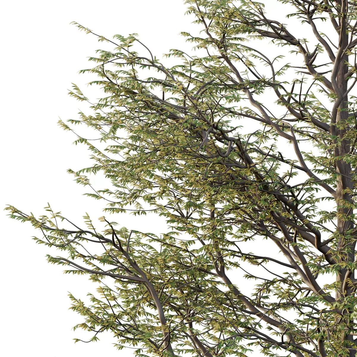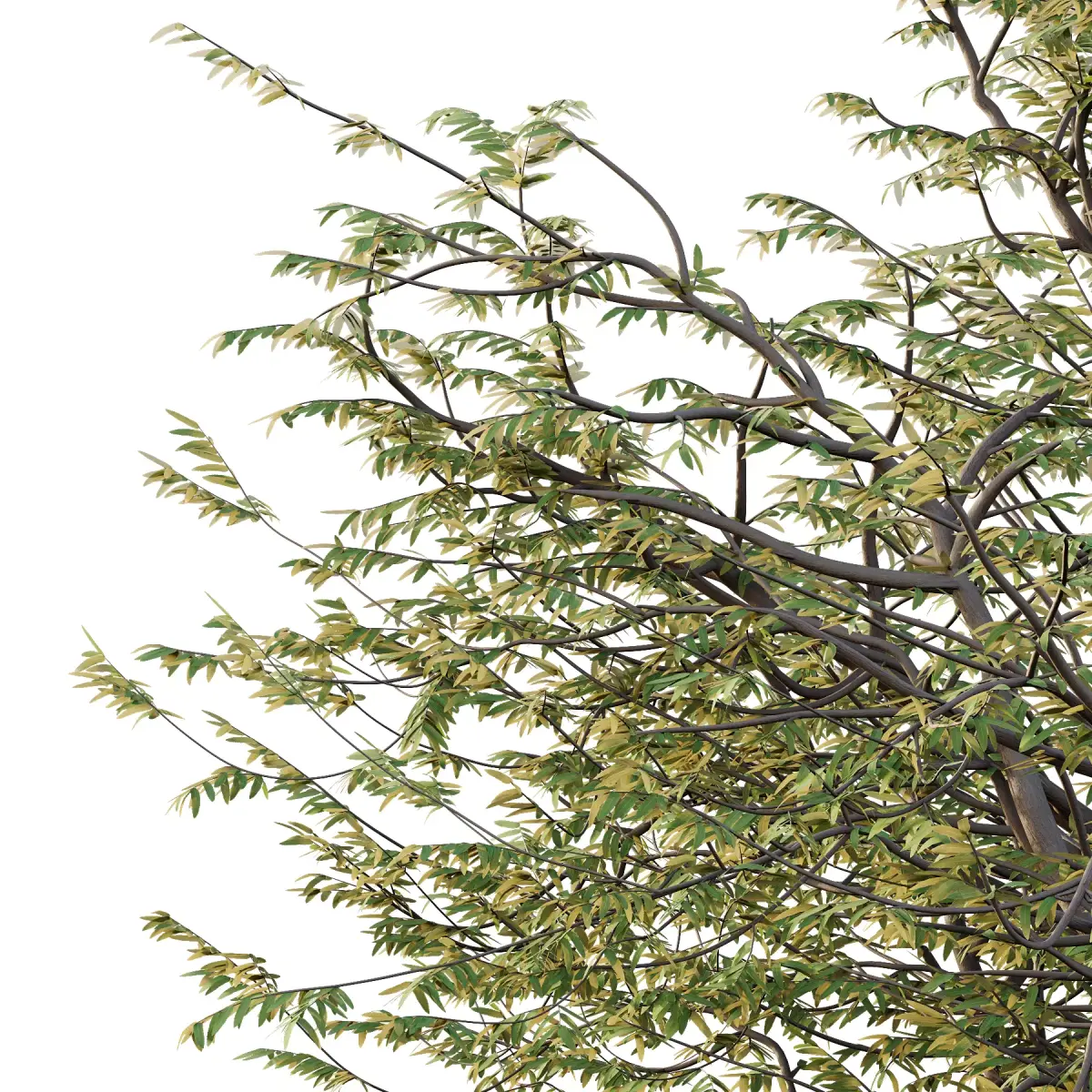 The tree has a slender trunk with smooth bark, a loose and roundish crown, and its leaves are pinnate in pairs of leaflets on a central vein with a terminal leaflet. It blossoms from May to June in dense corymbs of small yellowish white flowers and develops small red pomes as fruit that ripen from August to October and are eaten by many bird species.