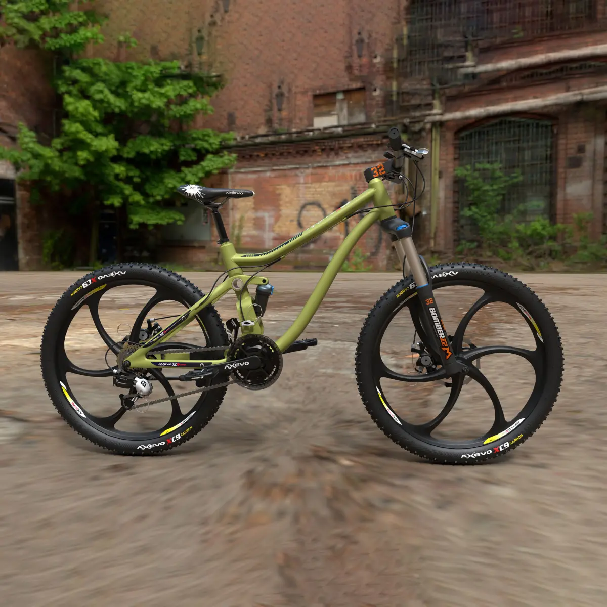 Suspension:Mountain bikes often have suspension systems to absorb shocks and bumps on uneven terrain.There are two main types of suspension: Hardtail: Front suspension only. Full-suspension: Both front and rear suspension for enhanced comfort and control.