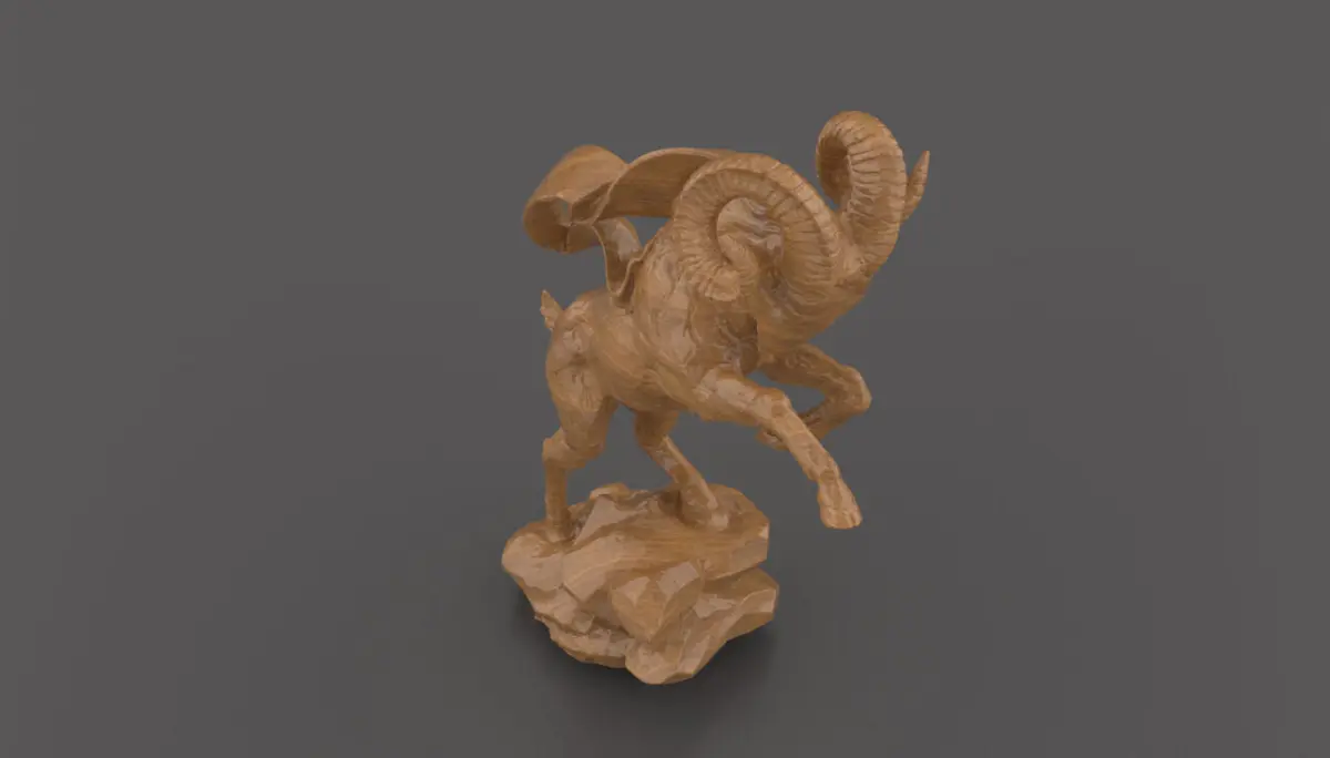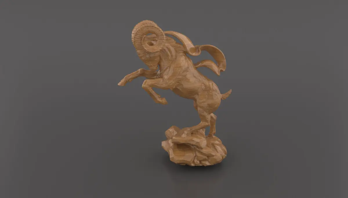 Carefully optimized for wood carving, resin casting, or FDM printing, the design captures the essence of motion and strength through detailed musculature and iconic curved horns.
