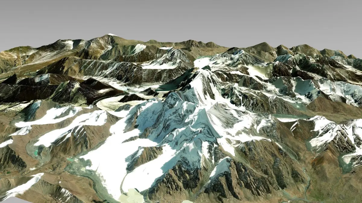 Bogdo-Ula Peak is the highest peak of the Bogdo-Ula Range in the Eastern Tien Shan, China. Height - 5445 m. The slopes of the peak are steep, up to 70-80 °. The peak is located in the western part of the range, not far from the city of Urumqi. On the northwestern slope of the mountain is the high-altitude lake Tianchi