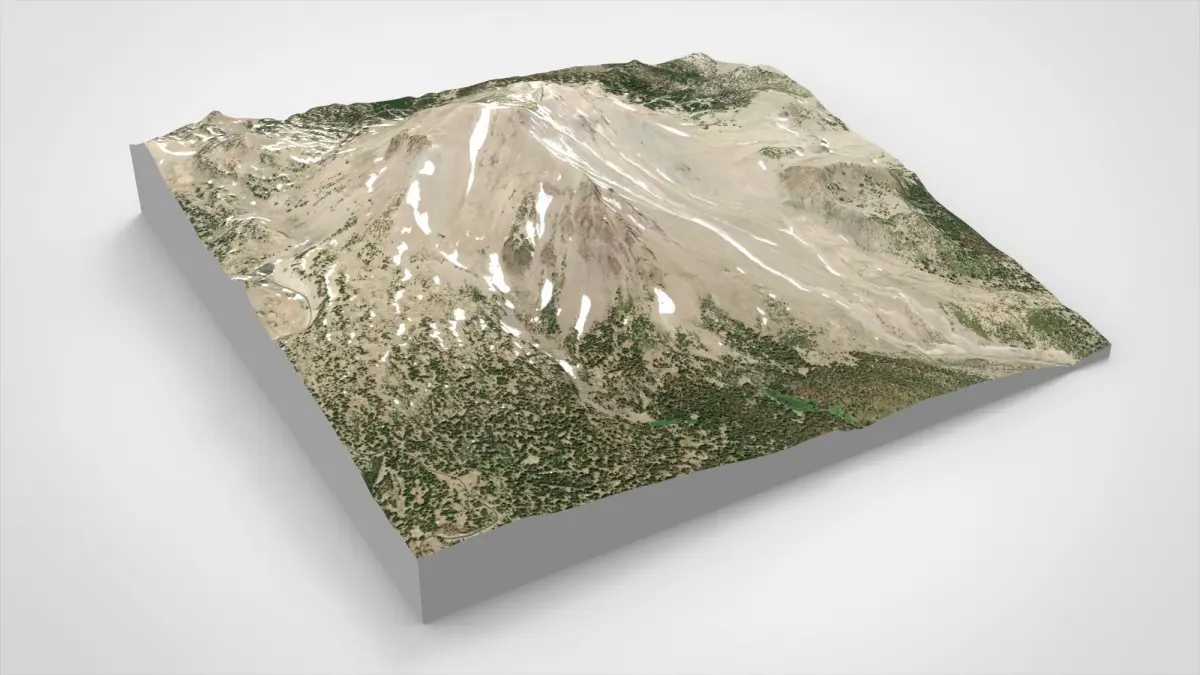 Lassen Peak is an active volcano in North America, located in the southern Cascade Mountains. At 3,187 m above sea level, it rises 2,000 feet above the surrounding area, making it one of the largest lava domes on Earth.