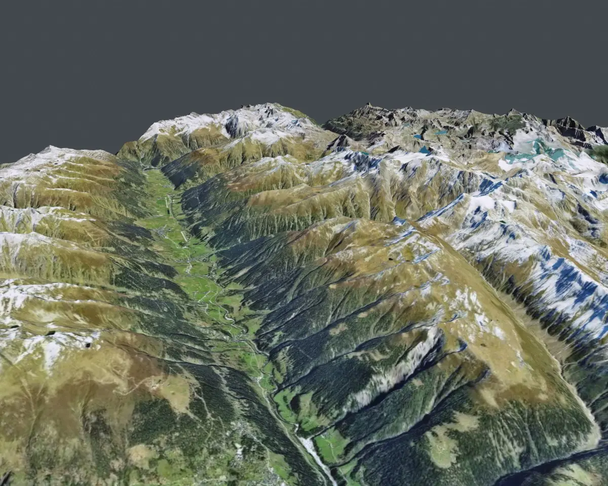 Mountain landscape near city Brig, Switzerland Originally modelled in 3ds max 2015 and Blender 2.91.2. Final images rendered with Corona Render 1.7 , Marmoset Toolbag 3
