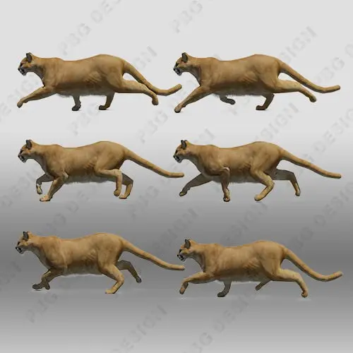 A low poly model of a Mountain Lion fully rigged and textures. Has facial bones to contol lips, braw and eyelids and claws. Great for games and animations.
