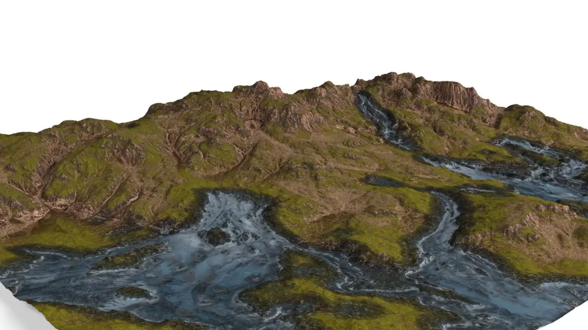 4K Texture Maps (Diffuse_Map, Reflection_Map, Occlusion_Map, Protrusion_Mask, River_Mask_01, River_Mask_02 And Slope_Mask).