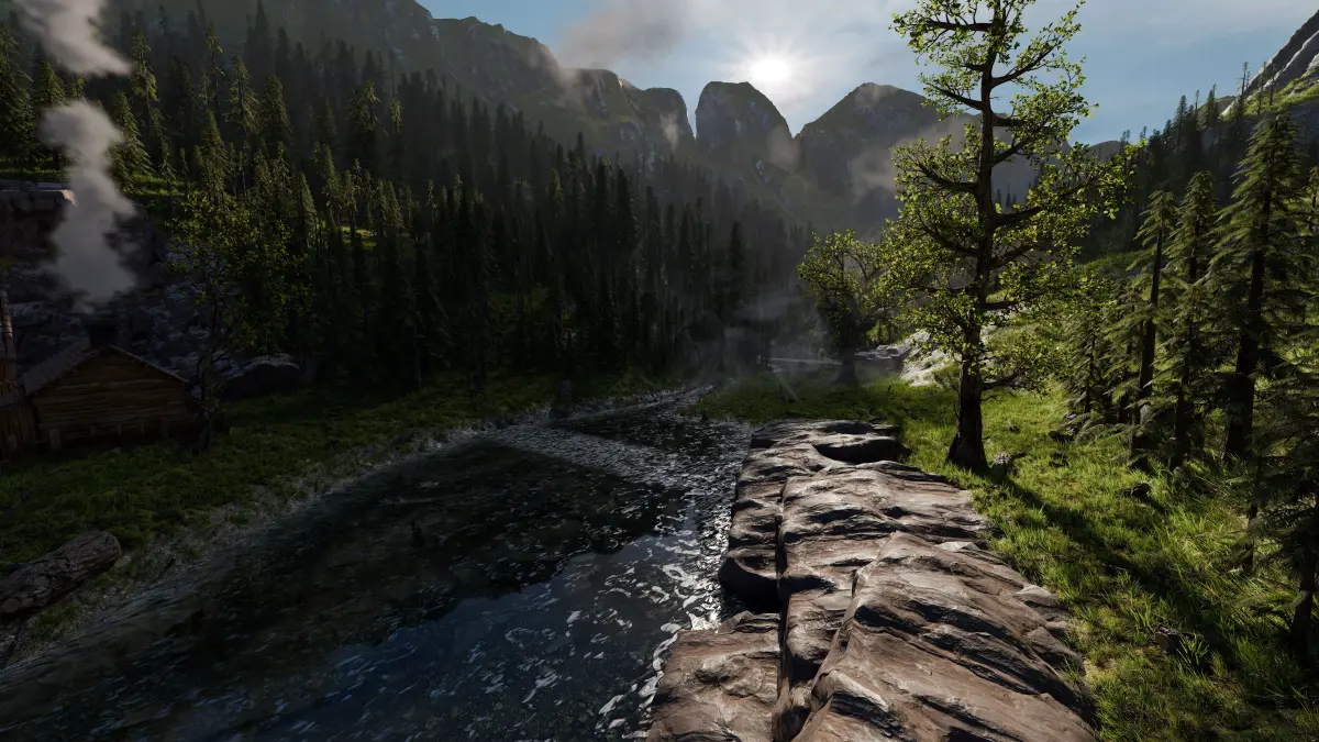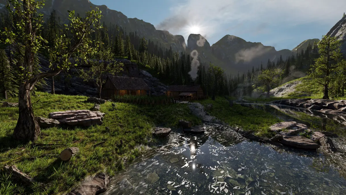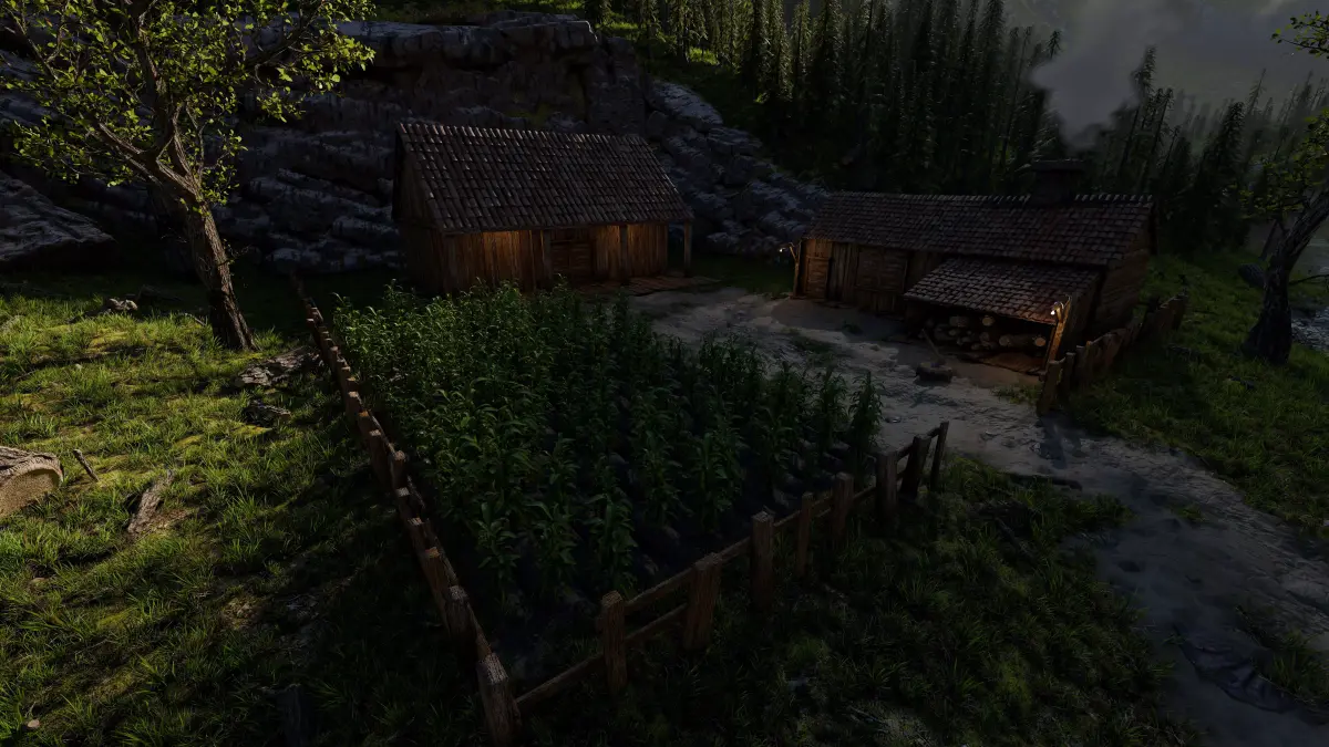 Mountain valley Farmstead Scene Made In Blender3D v5.0.