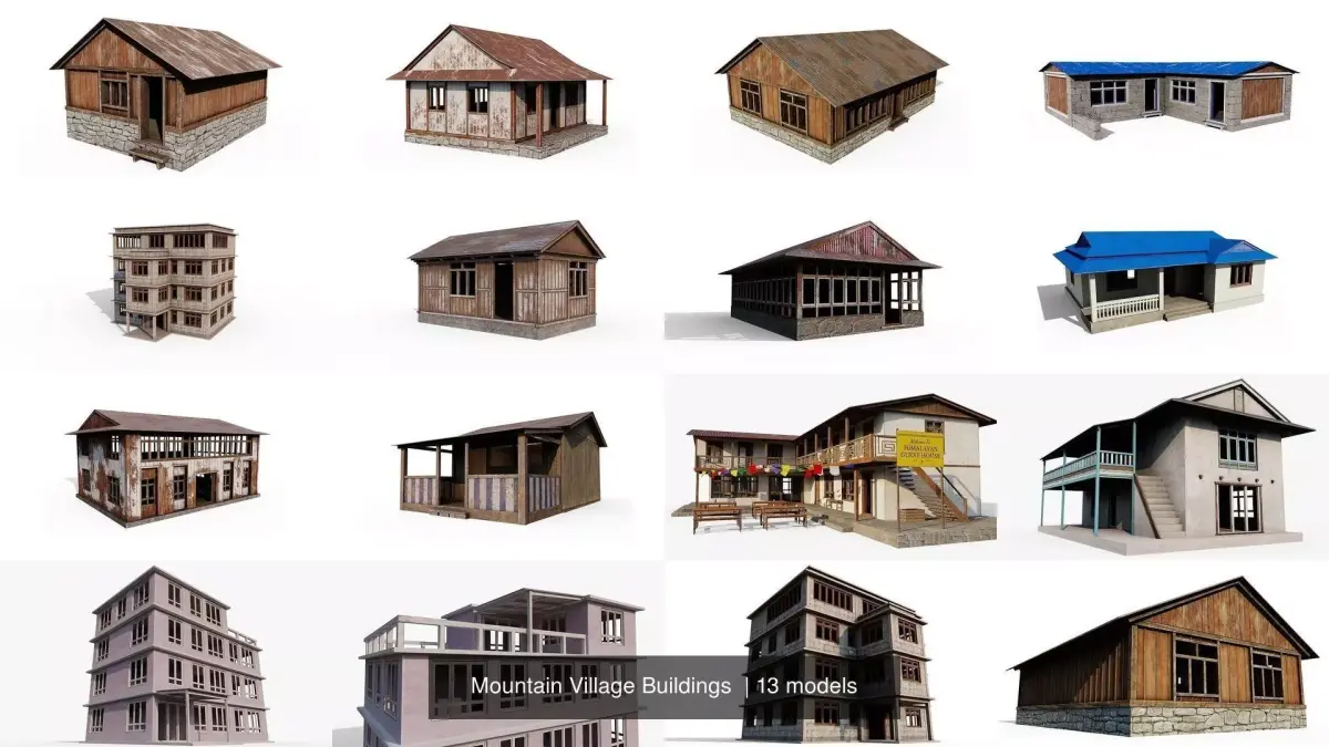 A collection of 13 Himalayan themed buildings, all with enterable interiors. There are also 35 props included which can be used to decorate both the interior and exterior of the buildings. All buildings are well optomized and work great in any modern game engine or for rendering purposes. The Full collection with over 110 props is available here: https://www.cgtrader.com/3d-models/various/various-models/mountain-village-collection