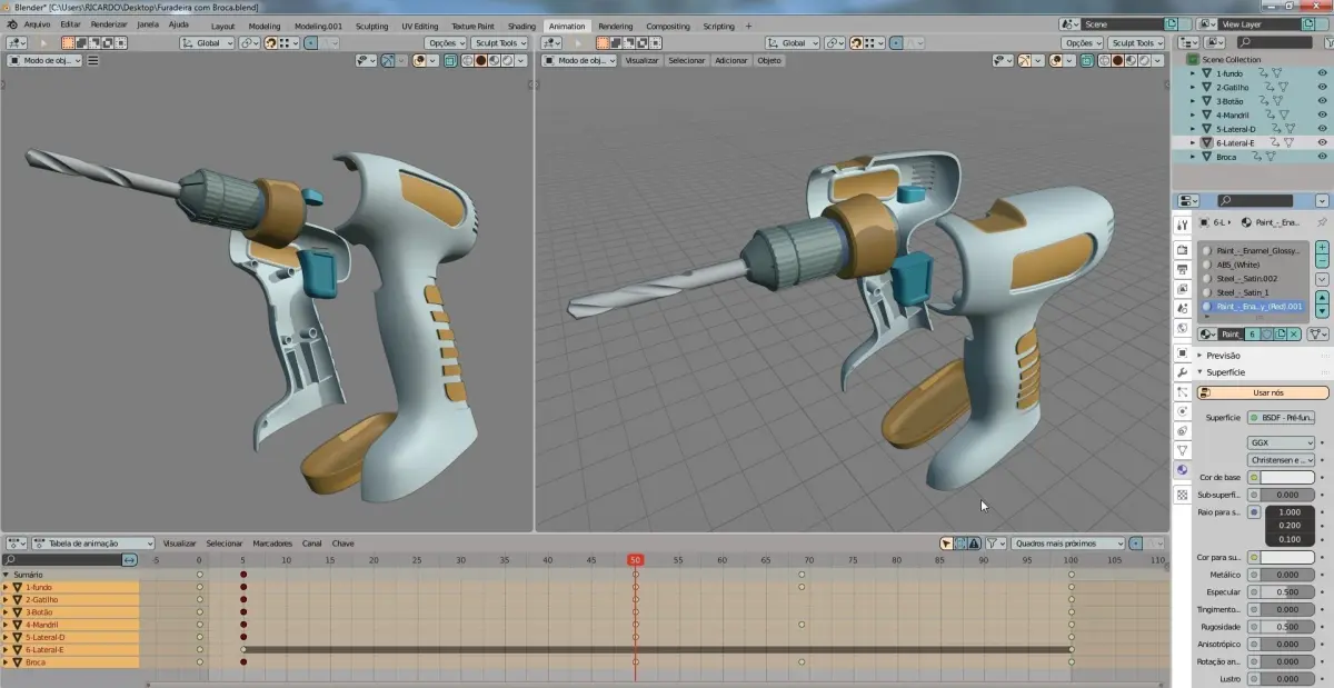 Peças de furadeira com broca1-possui malha otimizada2- áreas com ID marcado para aplicação de material3- todas as peças possuem volumePode ser motada usada para games e animações de lineares.