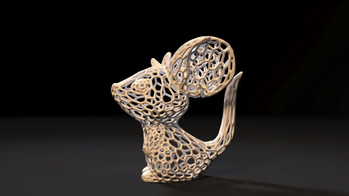 The model is an adorable mouse made in the unique Voronoi style, which gives it a light and airy feel through the use of asymmetrical shapes and thin walls. This style includes many small cells and patterns that create visually interesting and dynamic contours, making the model unusual and attractive.The Voronoi-pattern covers the entire surface of the model, creating a beautiful effect of light and shadow play.Inside the model there is a special compartment for installing a small torch or garland. This element of the design allows you to easily place the light source and gives additional functionality.The model can be used as a statuette, interior decoration or an original lamp. Illuminated from inside, the mouse creates an unusual atmosphere, filling the space with soft and cosy light.This 3D model of Voronoi mouse is a great choice for those who want to add a unique and stylish element to their interior. It not only attracts attention with its original design, but also performs a practical function, becoming a bright and cosy accent in any room.