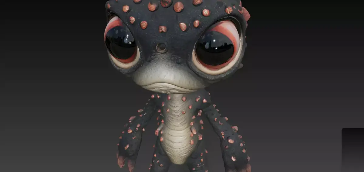 The model captures the essence of a rare juvenile from the planet Xylo, known for its oversized, light-gathering eyes and the hardened, chitinous spikes that cover its body. These dermal armor plates develop a distinctive reddish hue at the tips due to high concentrations of iron oxide in the planet's surface dust, which they absorb during their early molting cycles. The texture features rough, reptilian scales interspersed with softer, almost amphibious skin on the underbelly. This character was sculpted with the intention of bringing a unique, slightly melancholic but ultimately endearing personality to life, making it a perfect collectible for enthusiasts of bizarre and imaginative fauna. This design is optimized for both FDM and resin 3D printing, ensuring every spike and scale is faithfully reproduced.