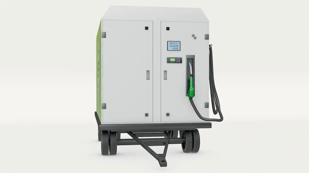 A 3D Model of a Movable Portable Dispenser on a Cart represents a compact, mobile fuel or liquid dispensing system mounted on a wheeled cart for easy transportation and efficient operation. This model includes: