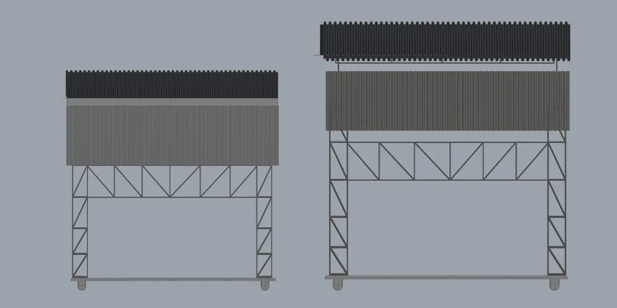 Movable Roof Facade is moved by railing system using wheels at the bottom to create motional structure.Scale 1:1