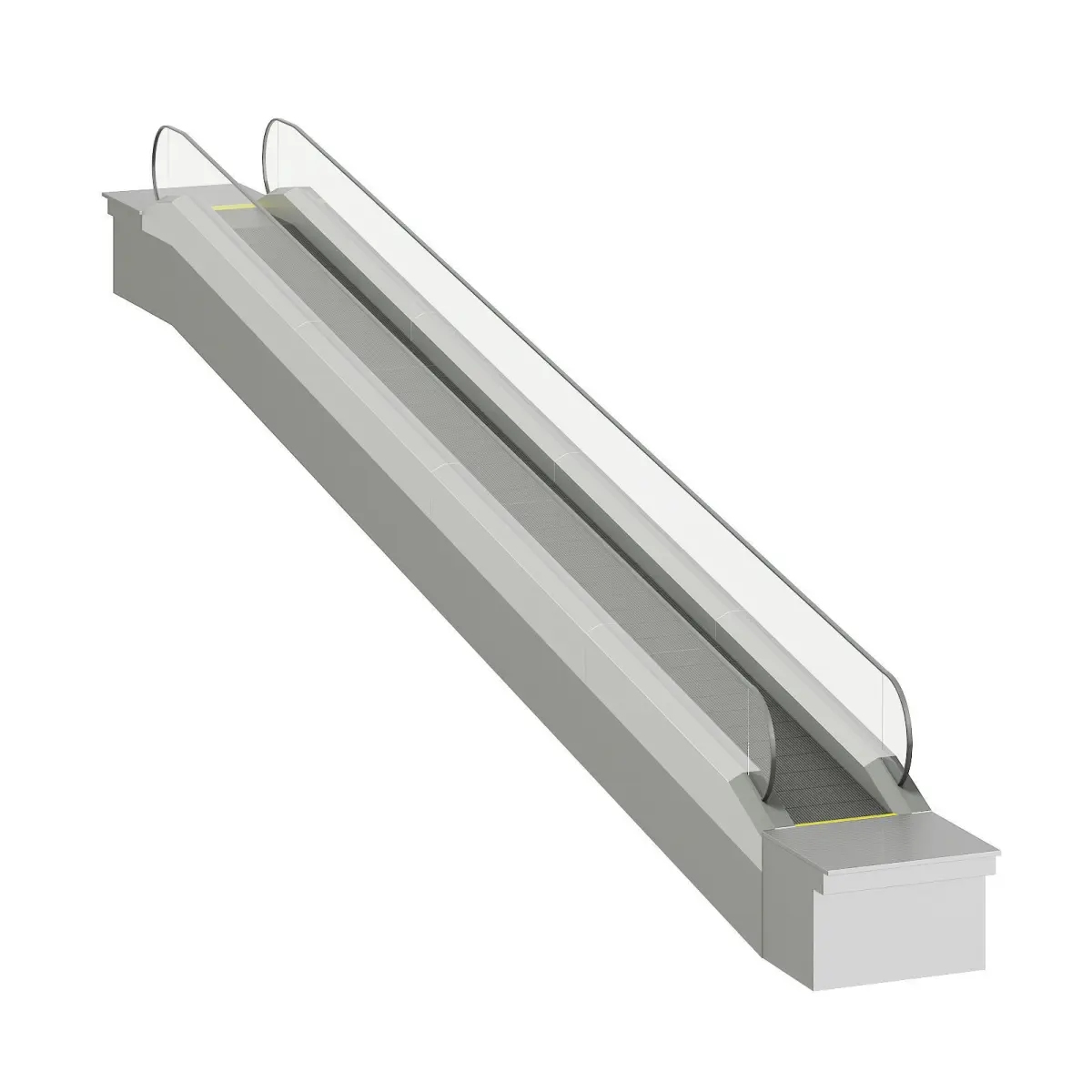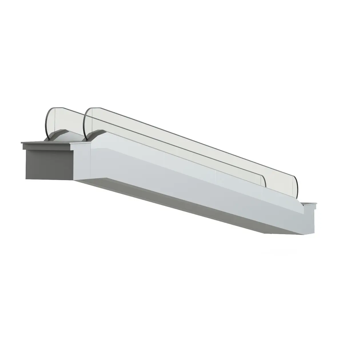 Moving walkway 3d model with silver sides and glass railings. This model is perfect if you are creating a large public scene, like a mall or a subway station. Compatible with 3ds max 2010 (V-Ray, Mental Ray, Corona) or higher, Cinema 4D R15 (V-Ray, Advanced Renderer), FBX, OBJ and Unreal Engine.