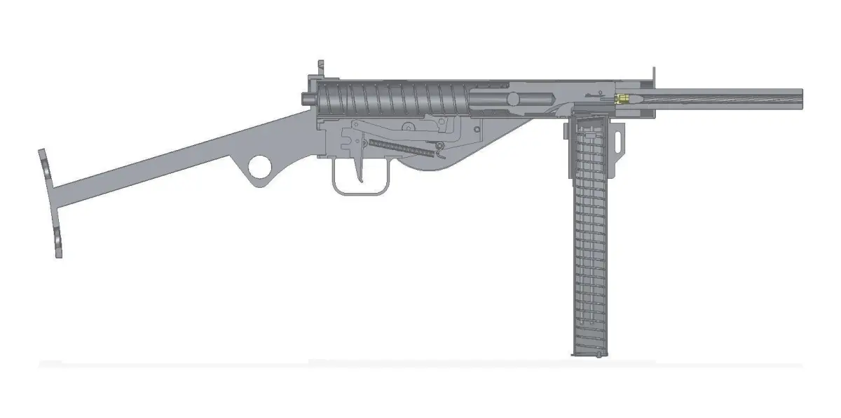 Also known as the Volksmaschinenpistole (people's machine pistol), the weapon was closely based on the Sten Mk II submachine gun, except for its vertical magazine; some had additional pistol grips. The MP 3008 was an emergency measure, designed at a time when Germany was at the point of collapse. Desperately short of raw materials, the Germans sought to produce a radically cheaper alternative to their standard submachine gun, the MP 40. The MP 3008 was a simple blowback design operating from an open bolt. It was crudely manufactured in small machine shops and variations were common. Typically, the magazine was bottom-mounted unlike the side-mounted Sten. Initially all steel without handgrips, the wire buttstock was welded to the frame and was typically triangular, however the design changed as conditions inside Germany worsened and on final guns wooden stocks and other variations are found. The Gerät Potsdam, another version of the Sten Mk II produced by Mauser in 1944, was an exact copy of the original Sten, right down to its manufacturing stamps in an effort to conceal its origin for clandestine operations. About 28,000 were claimed to be produced. Postwar interrogations of highly ranked Mauser personnel failed to provide proof of any more than 10,000 units being produced.