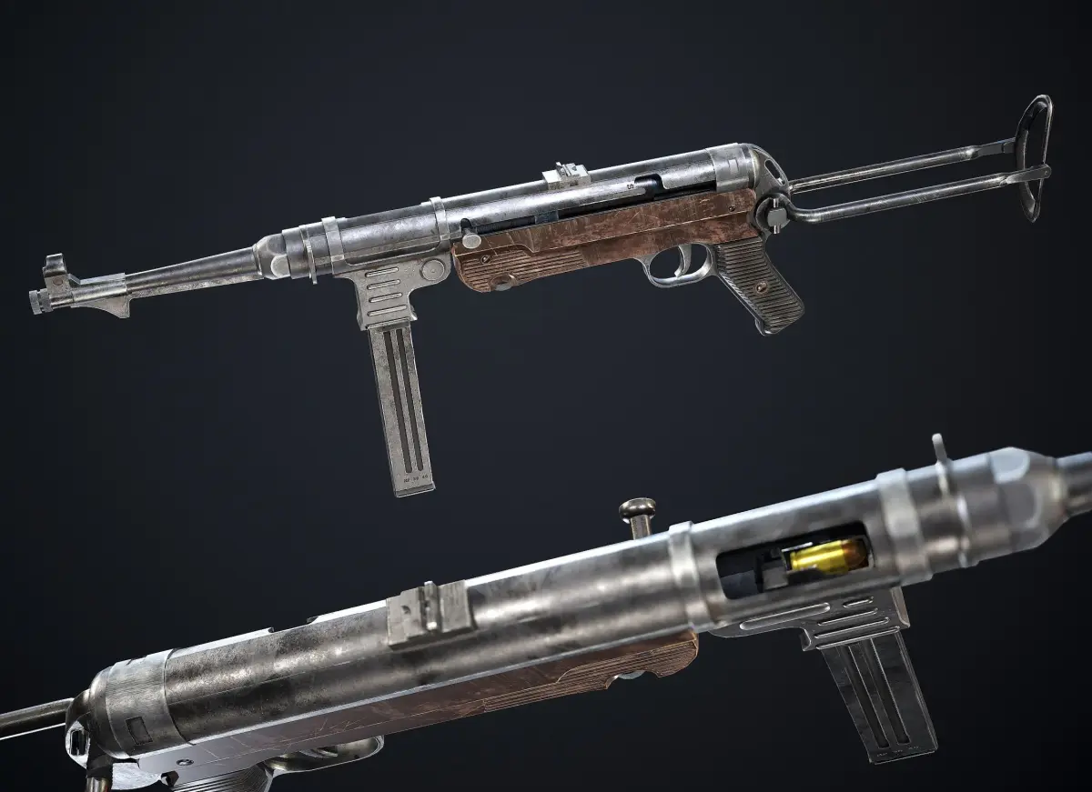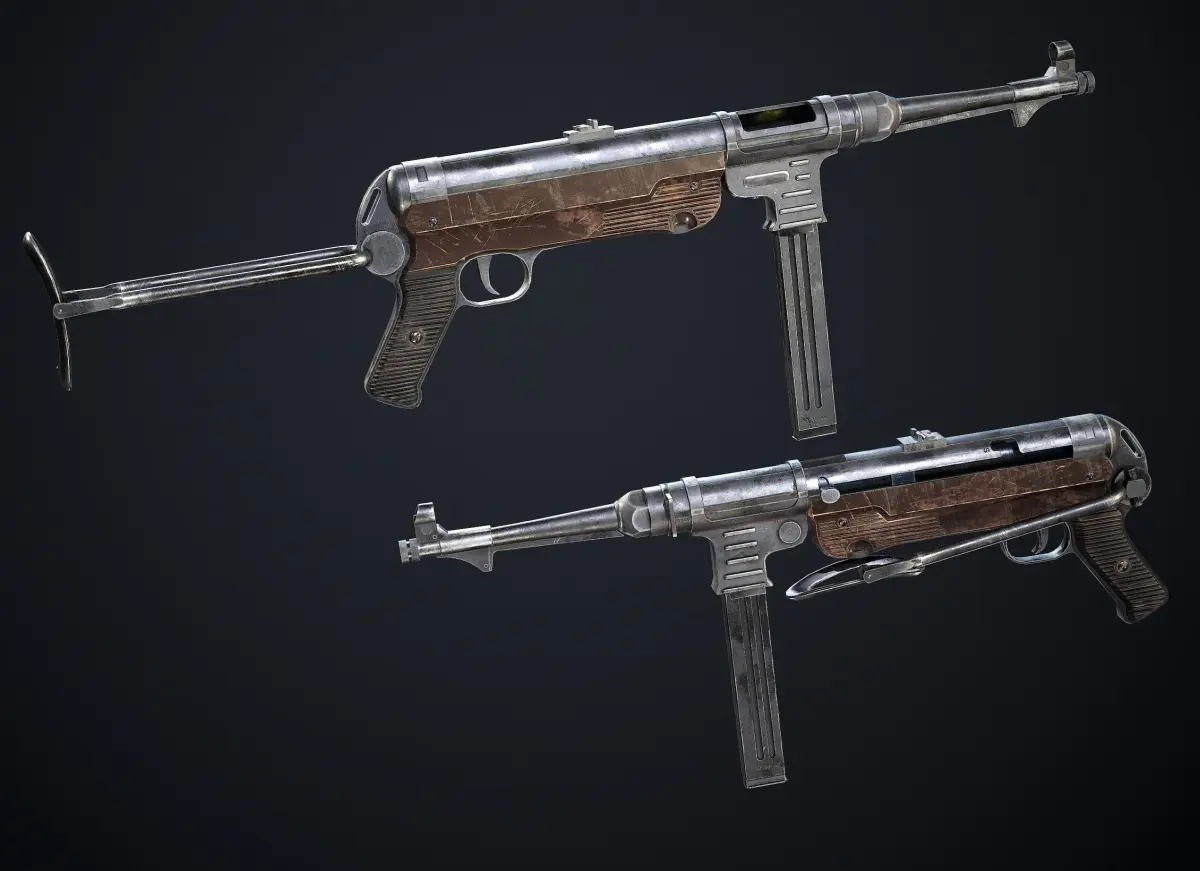 Another iconic gun of AXIS powers. The MP 40 (Maschinenpistole 40) is a submachine gun chambered for the 9×19mm Parabellum cartridge. It was developed in Nazi Germany and used extensively by the Axis powers during World War II. It was modeled in 3ds Max, textured in Substance painter. It has one 4k texture set, clean, game ready topology that it can be seen in marmoset viewer attached in the last picture. Polys: 9254 Verts: 9417