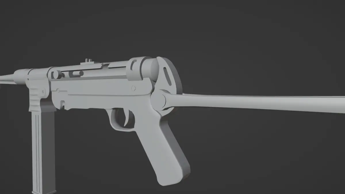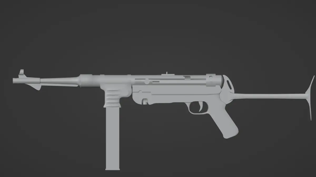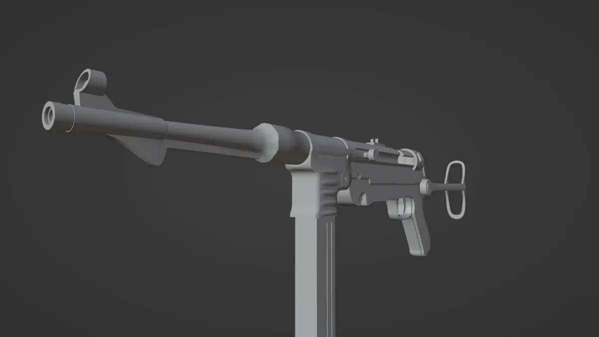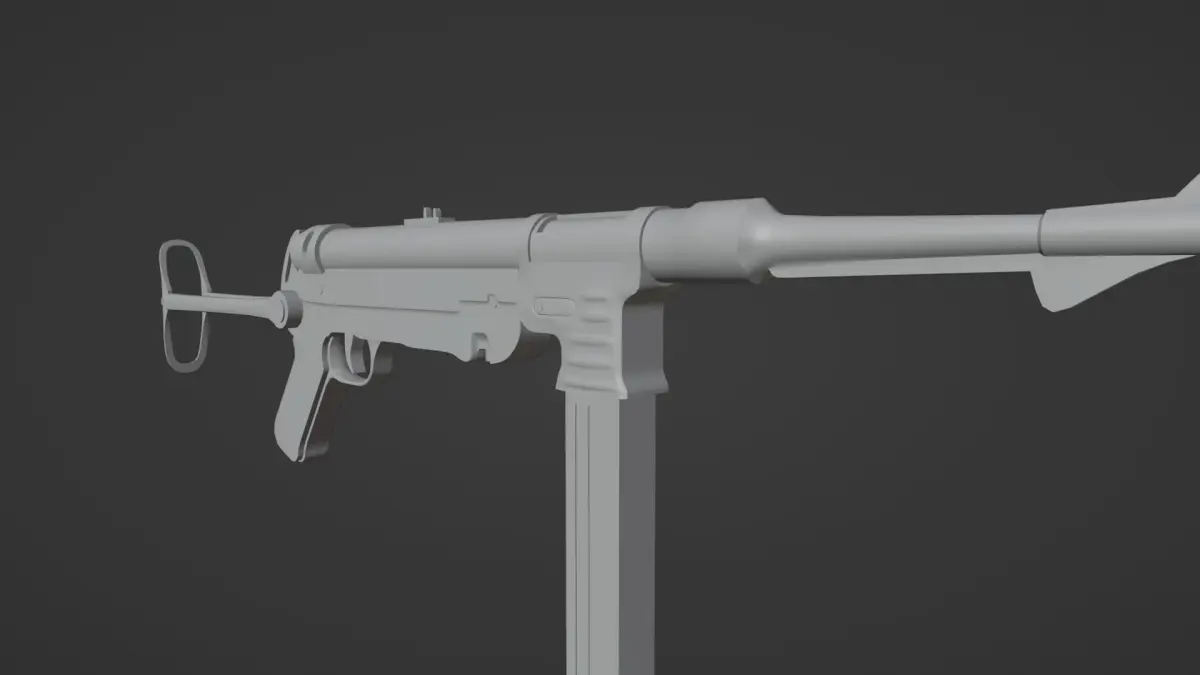 This is a model of a MP-40 submachine gun.The length barrel to stock is 0.83m.The unit scale in blender is set 0.1 units so set your importing accordingly