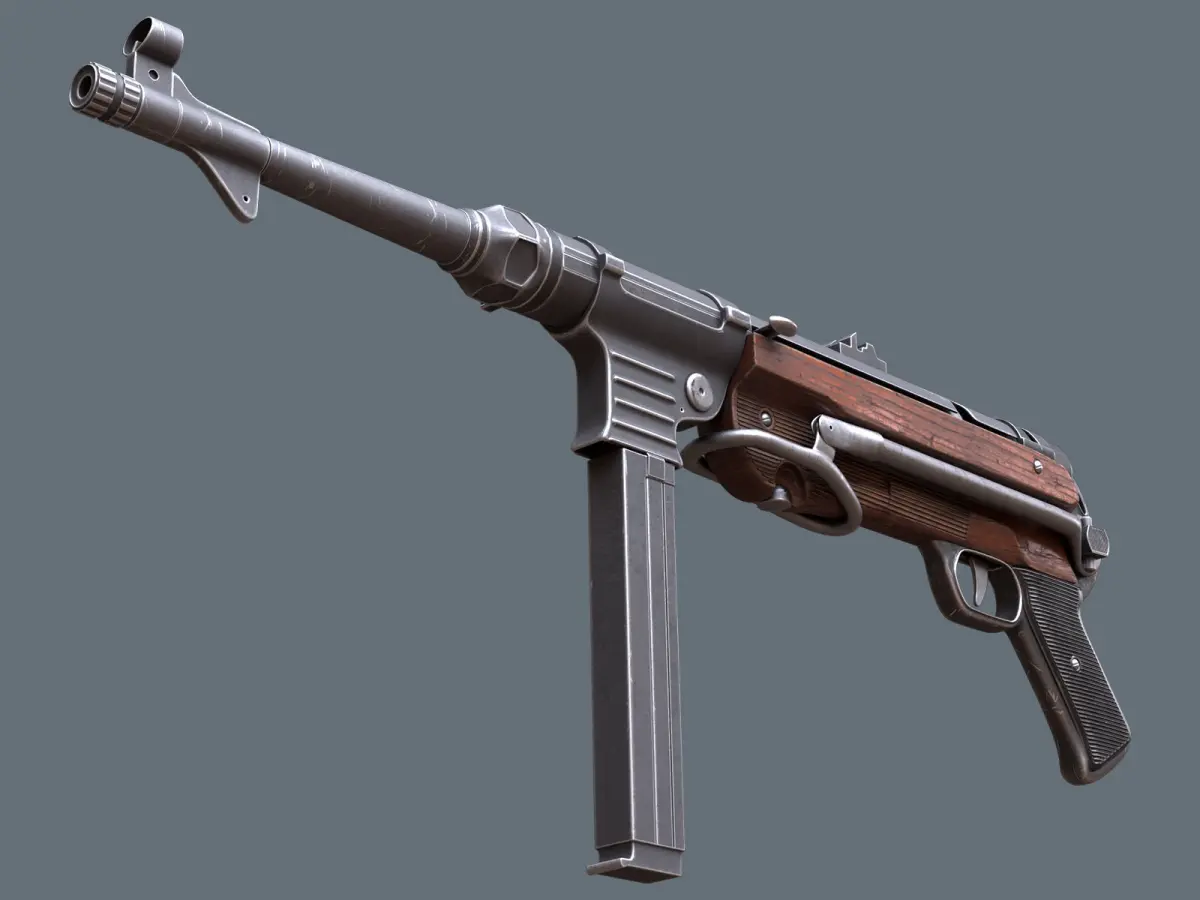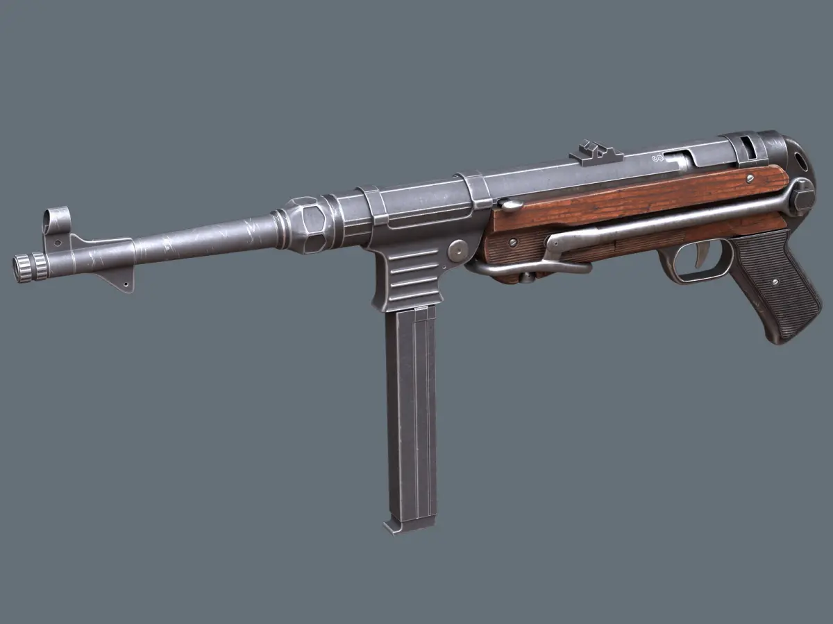 MP40 Submachine Gun Germany World War 2 wwiiThe MP 40 (Maschinenpistole 40) is a submachine gun chambered for the 9×19mm Parabellum cartridge. It was developed in Germany and used extensively by the Axis powers during World War II. The MP 40 was often called the Schmeisser by the Allies.Highly Detailed MP40 model with PBR materials that can give consistent results throughout a wide range of render engines.